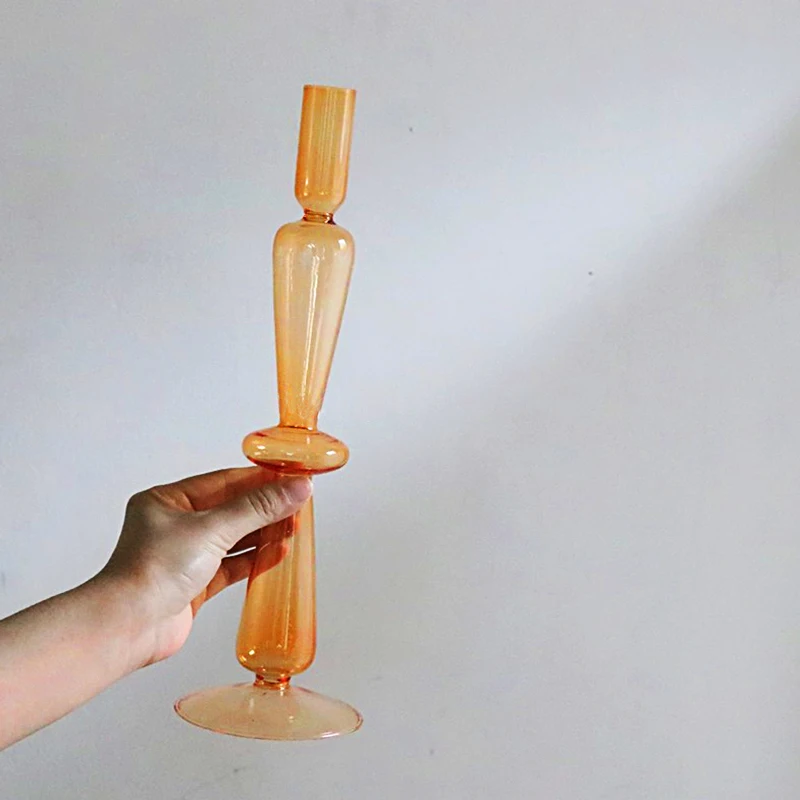 Glass Candle Holders Nordic Transparent Colorful Flower Vase Romantic Dinner Desktop Candlestick For Birthday Wedding Home Decor