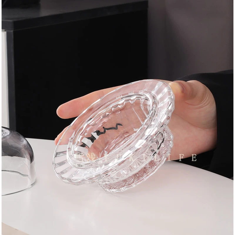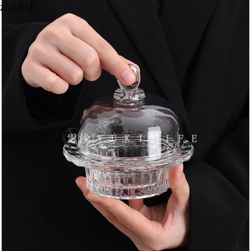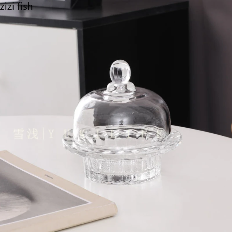 title:Glass Dessert Plate with Lid Dining Plate Cake Plates Dim Sum Dish Caviar Dish Butter Dish Sashimi Plate Fruit Dishes Salad Bowl