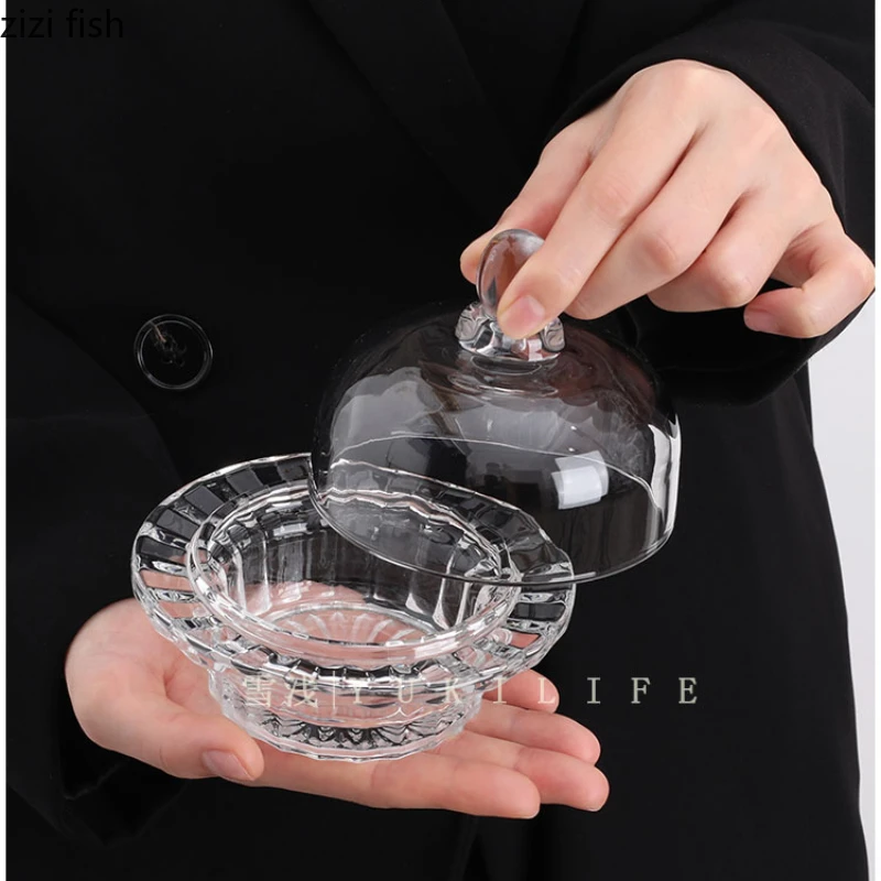 Glass Dessert Plate with Lid Dining Plate Cake Plates Dim Sum Dish Caviar Dish Butter Dish Sashimi Plate Fruit Dishes Salad Bowl