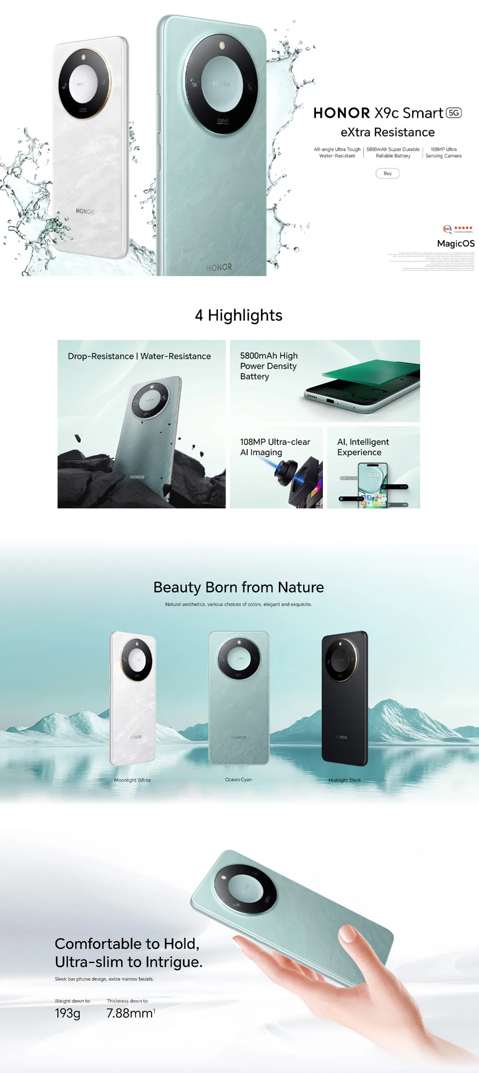 Global Version HONOR X9c Smart 5G 12GB+256GB 6.8" FHD Display 5800mAh 35W Fast Charger Dual SIM Unlocked Android Mobile Phone