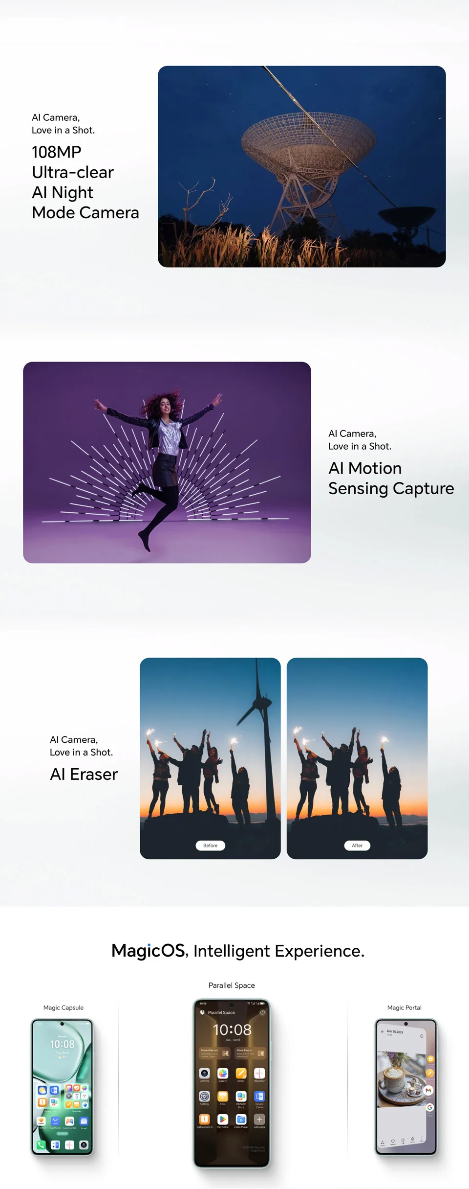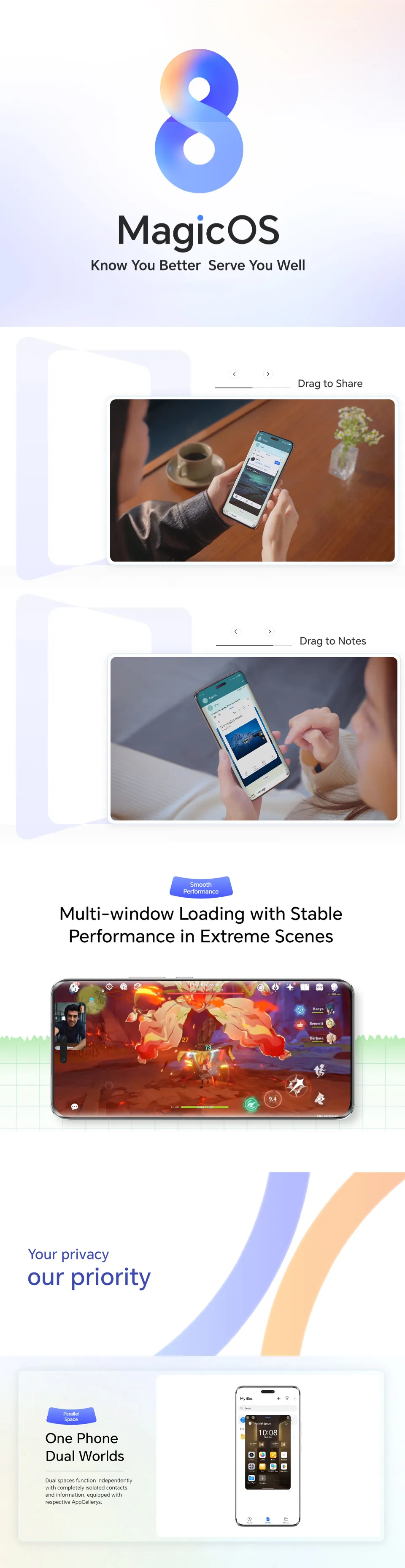 • Android 14 with Magic OS 8 ensures a seamless, intuitive, and customizable user experience.