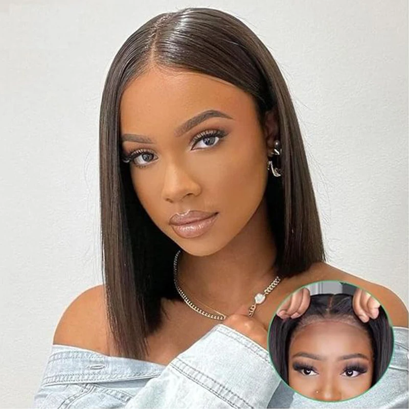 Glueless Wigs Human Hair Pre Cut No Glue 6*4 Lace Closure Bone Straight Wigs For Women Pre Plucked