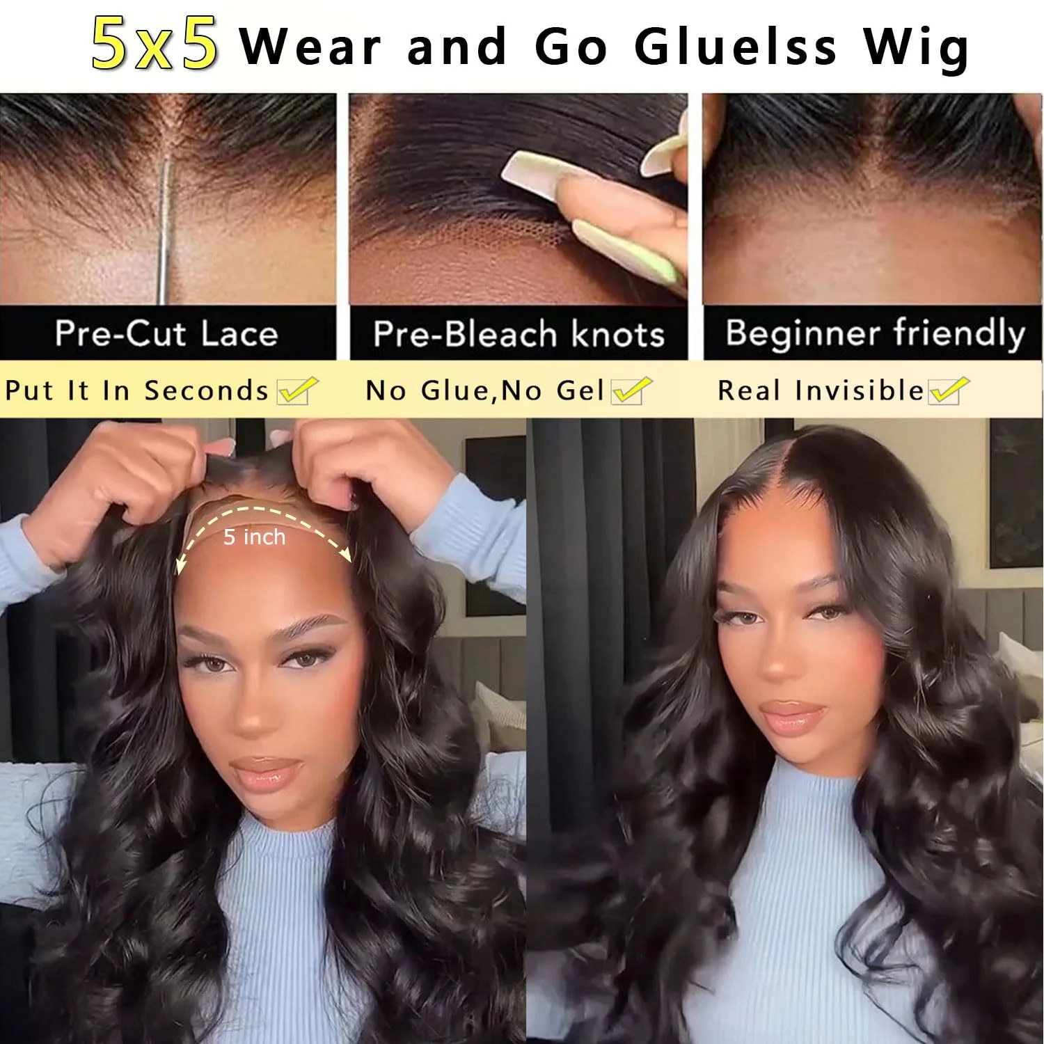 Glueless Wigs Ready To Wear Body Wave Closure Wig 5×5 6×4 HD Lace Wig Pre Plucked Hairline Pre Cut Human Hair Wigs Without Glue