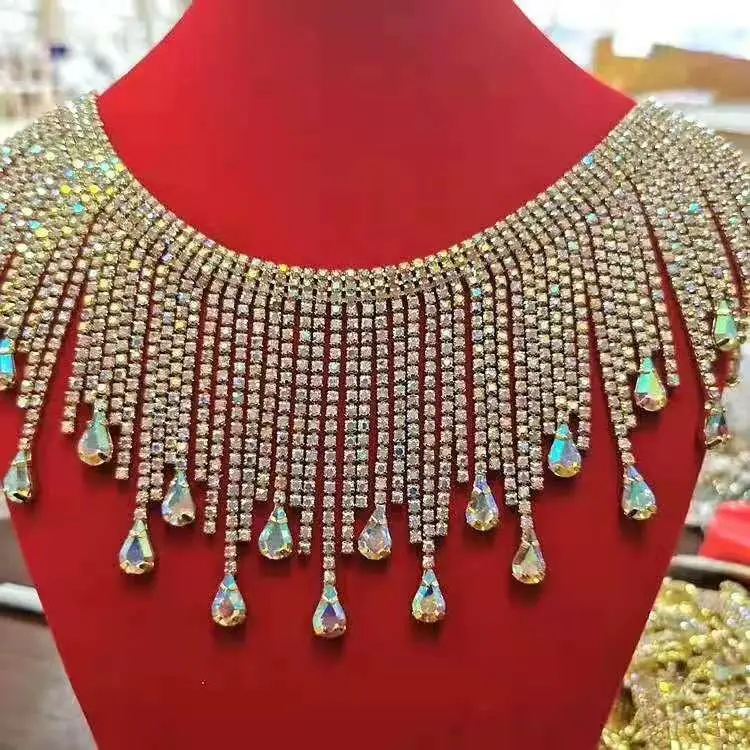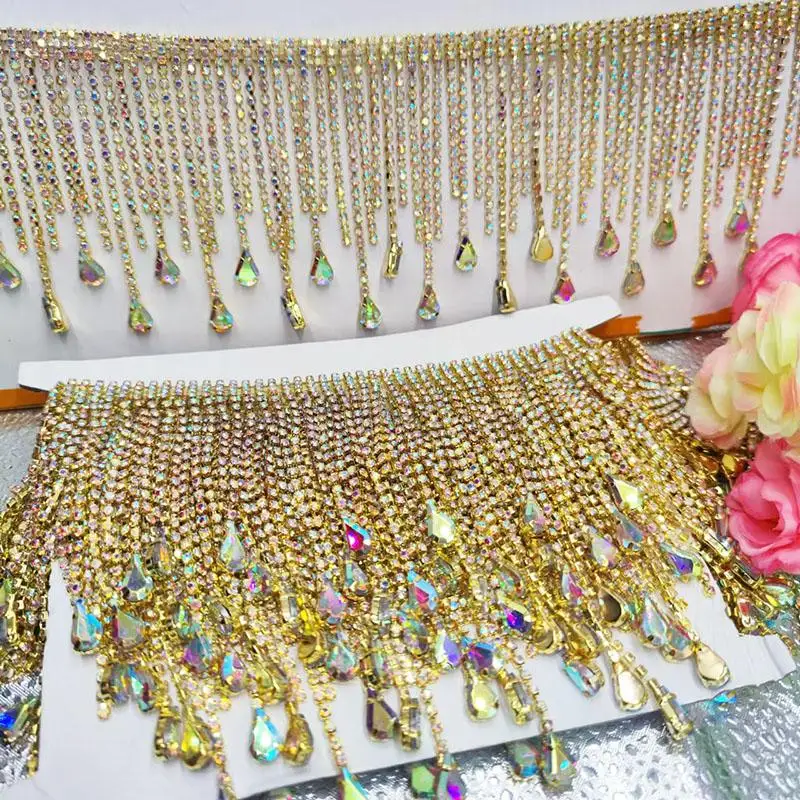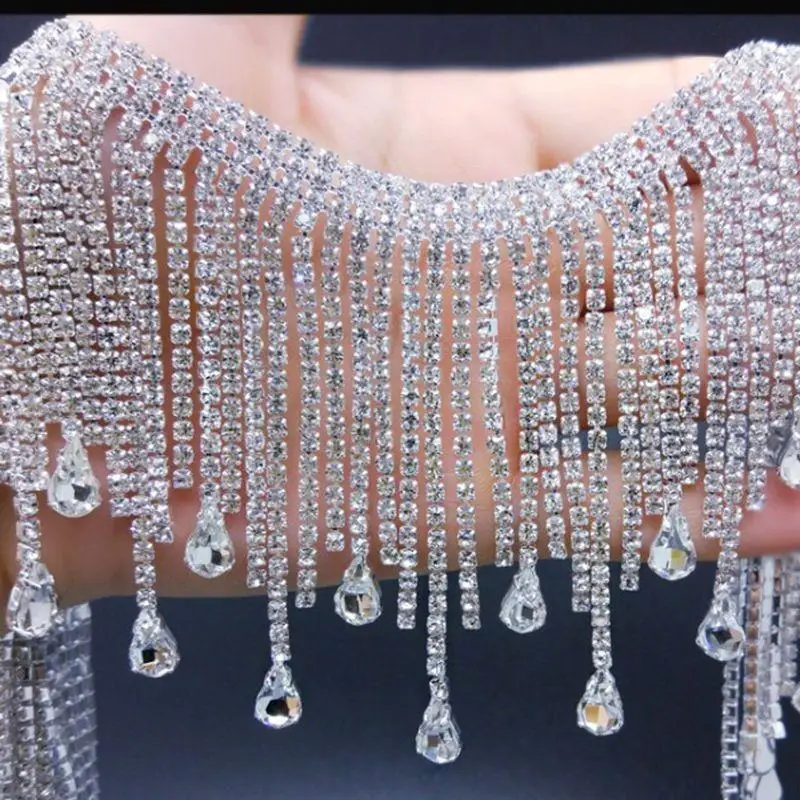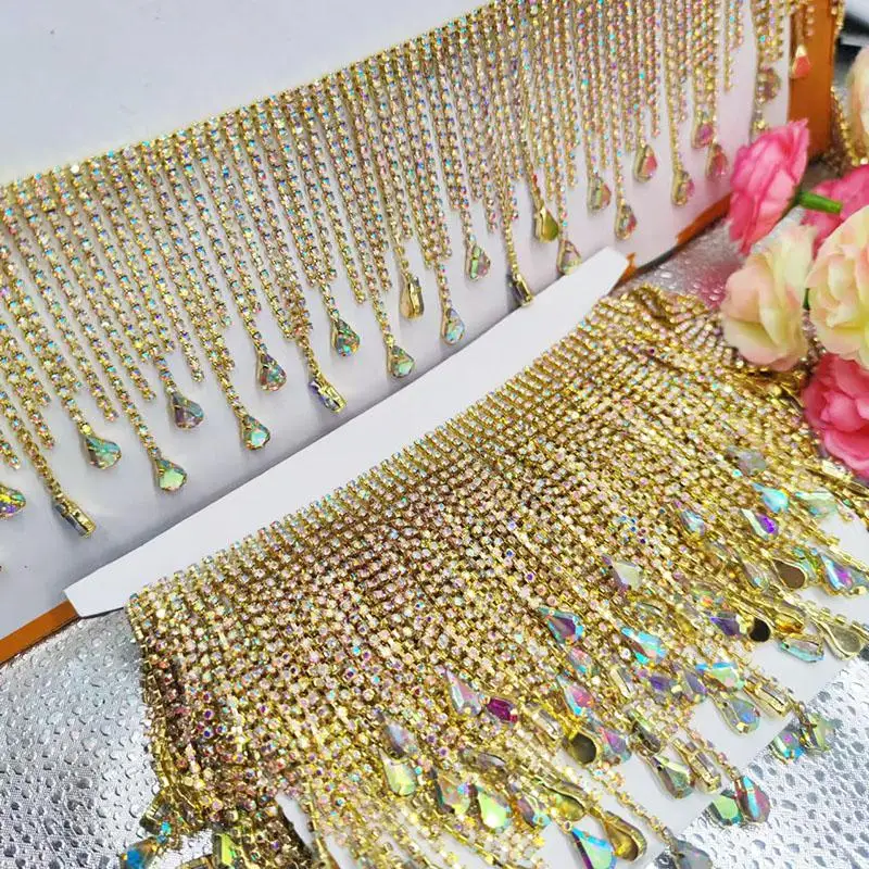 Gold and Silver Heart-shaped Encrypted Tassel Hanging Bead Long and Short Rhinestone Jewelry Lace DIY Craft RS25009