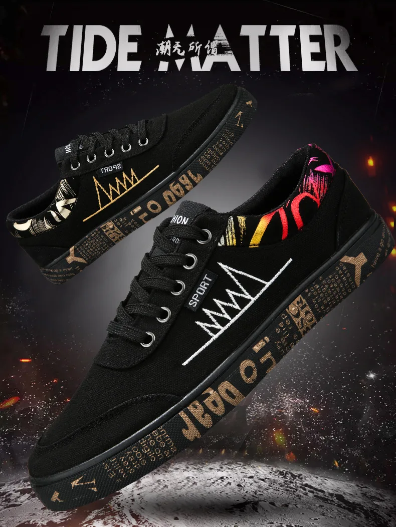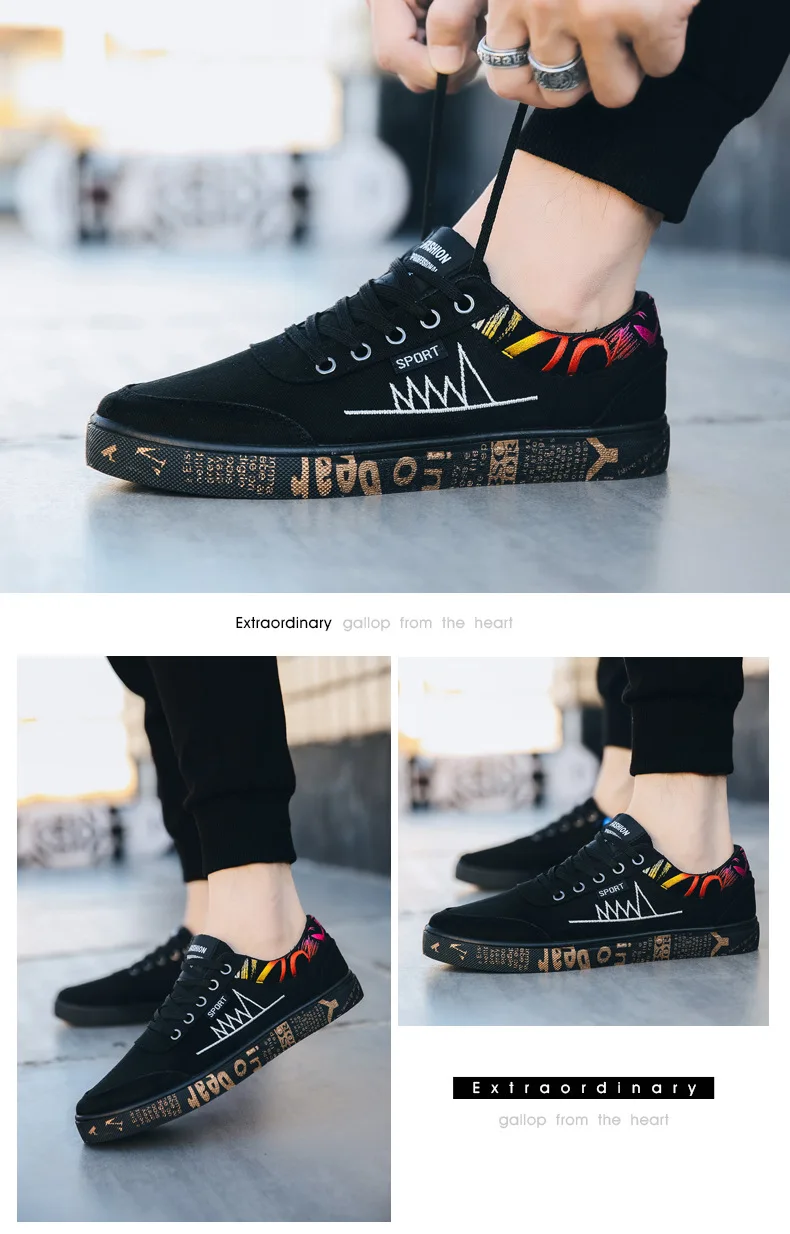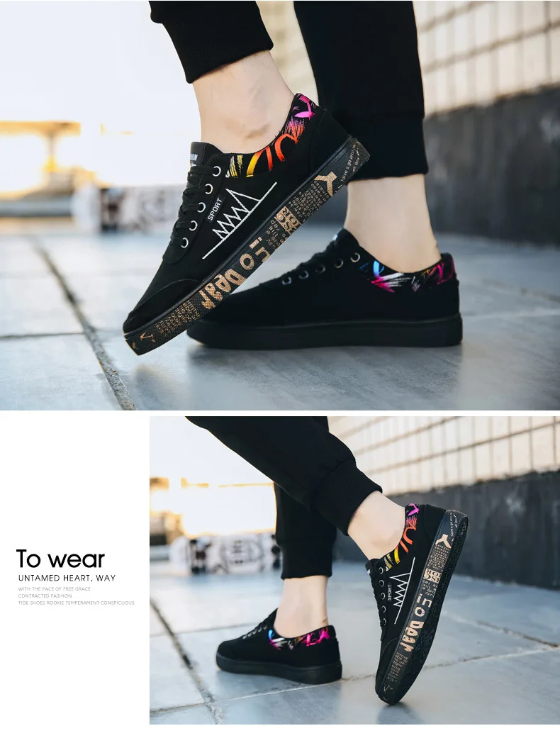 Graffiti Canvas Shoes Men Breathable Flat Casual Shoes 2021 Outdoor Comfortable Walking Sneakers New Student Shoe Zapatos Hombre