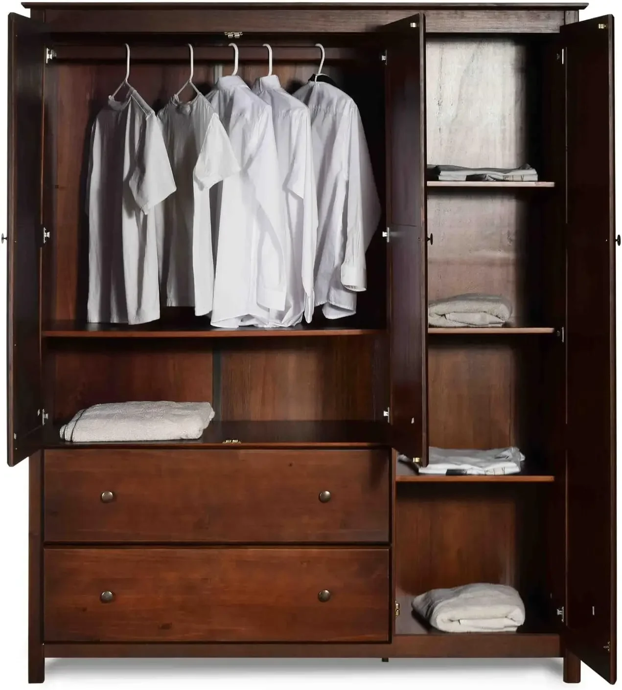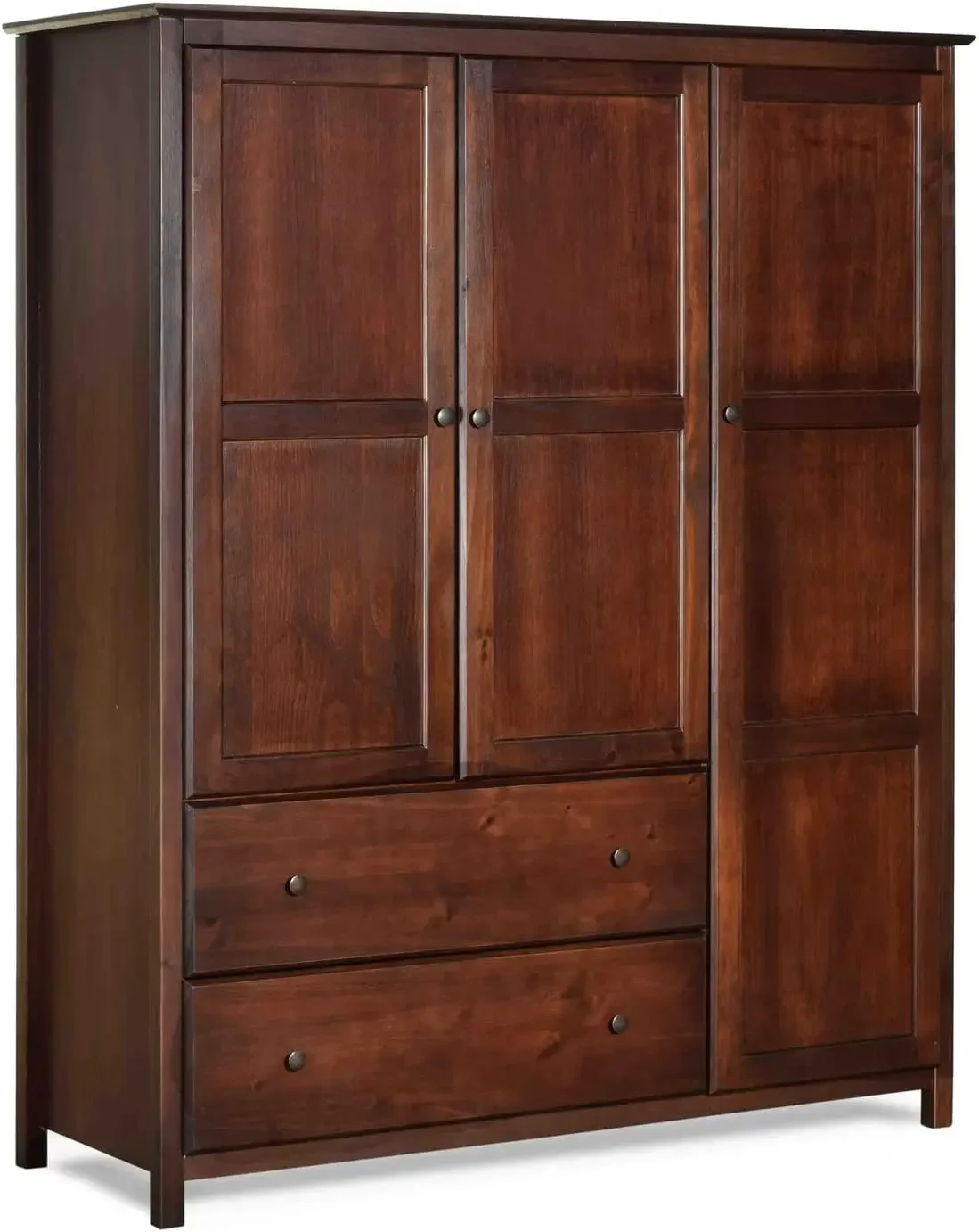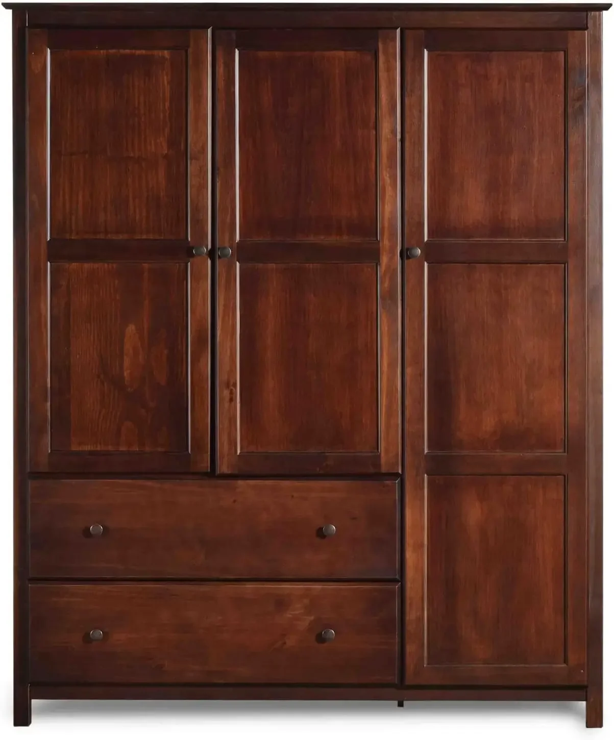 Grain Wood Furniture Shaker 3-Door Wardrobe, Solid Wood with Cherry Finish