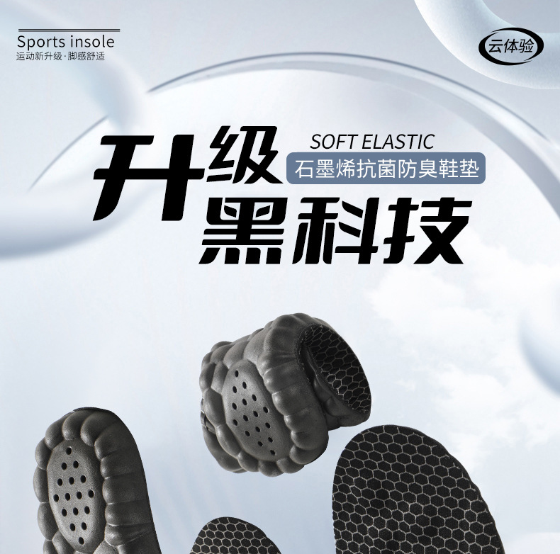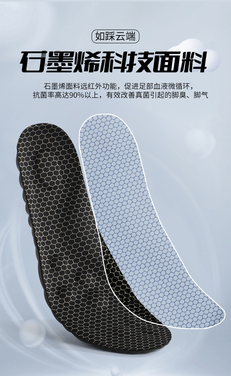 Grapheneanti-bacterial and anti-odour insoles Highly elastic shock-absorbing sports insolesSoft soleRelieving leg fatigue insole