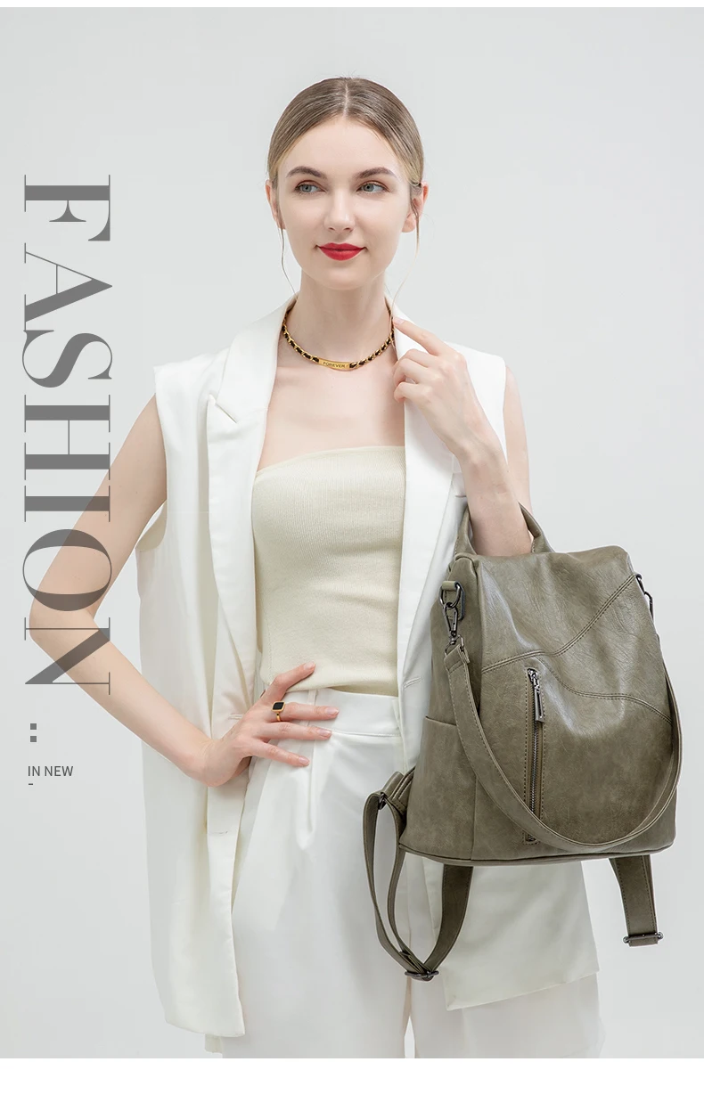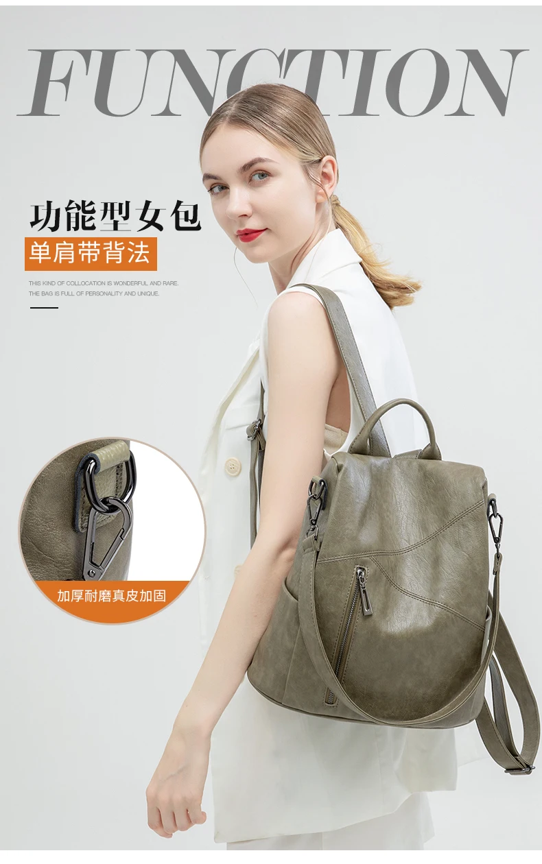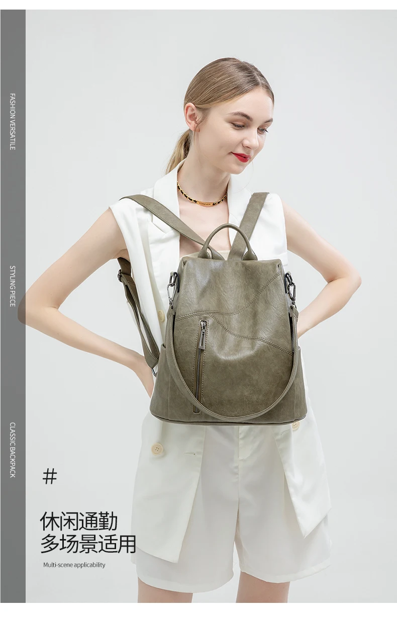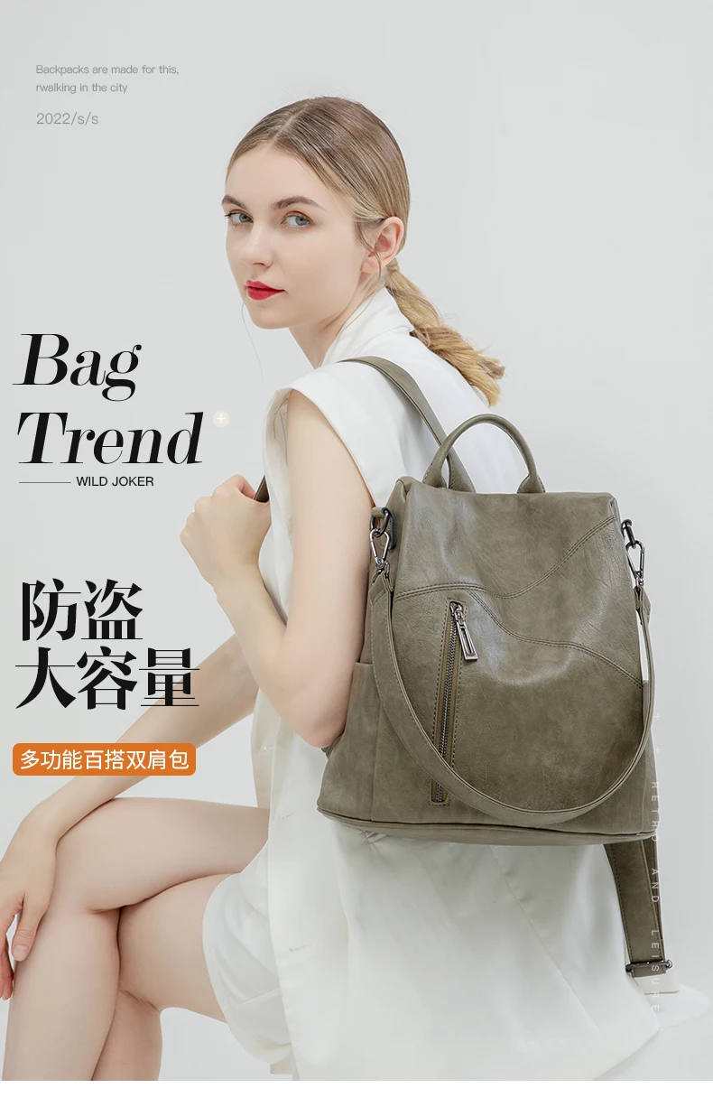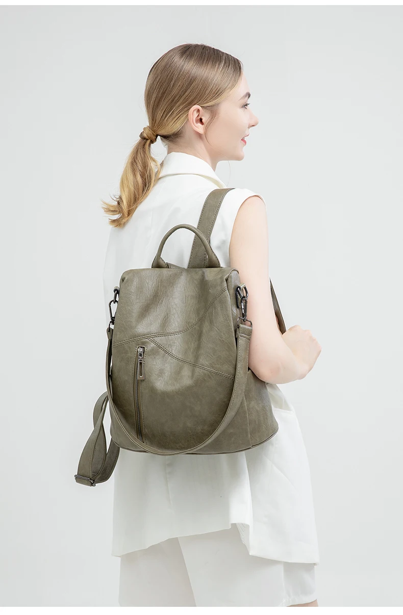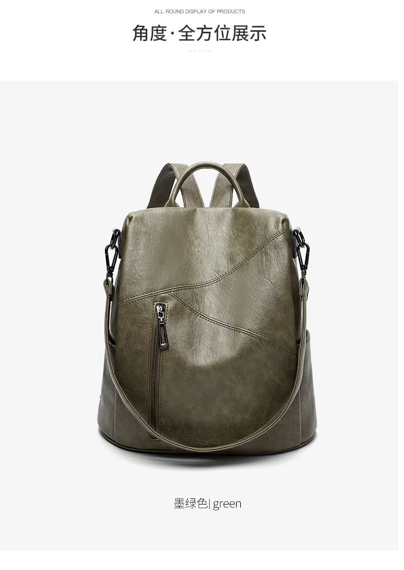 Green Backpack Women Urban Bags Vintage Leather Backpacks Waterproof Large Pocket Backbag Business Female Travel Bag Anti-theft