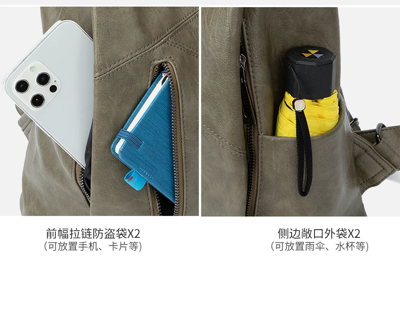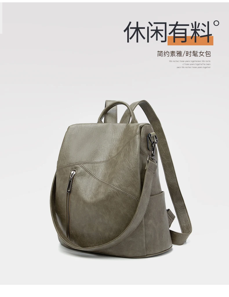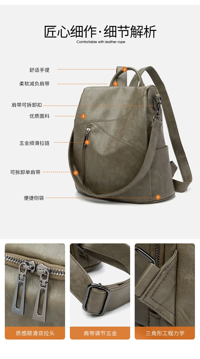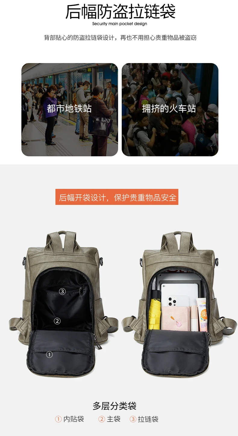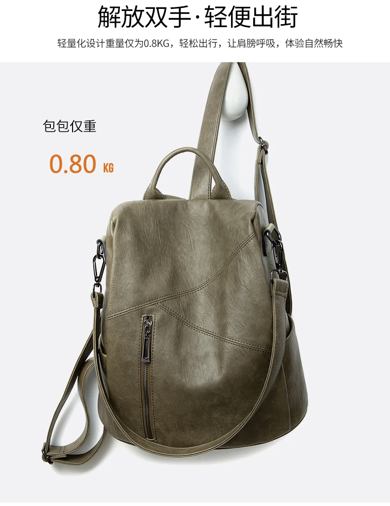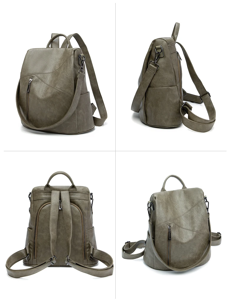 Green Backpack Women Urban Bags Vintage Leather Backpacks Waterproof Large Pocket Backbag Business Female Travel Bag Anti-theft