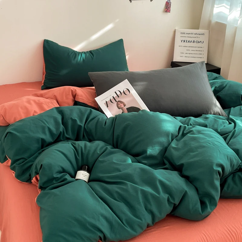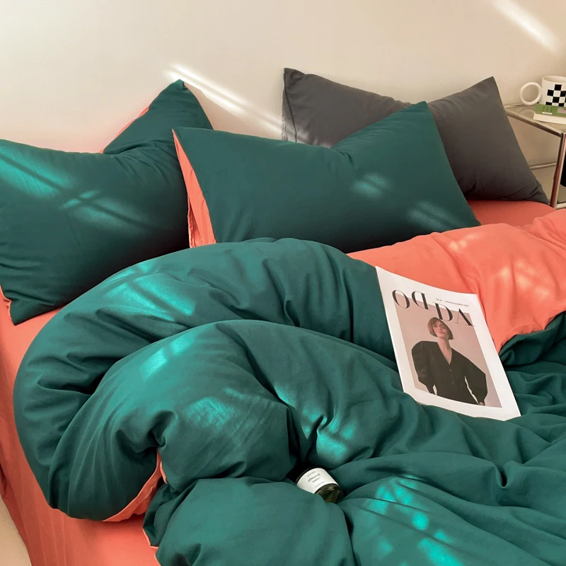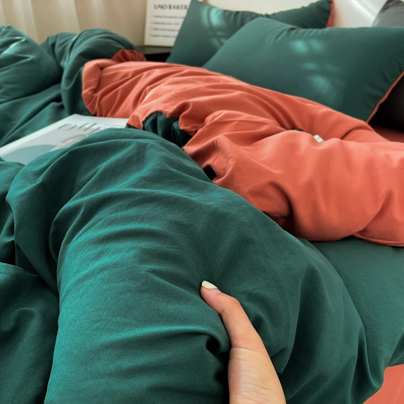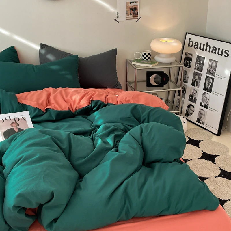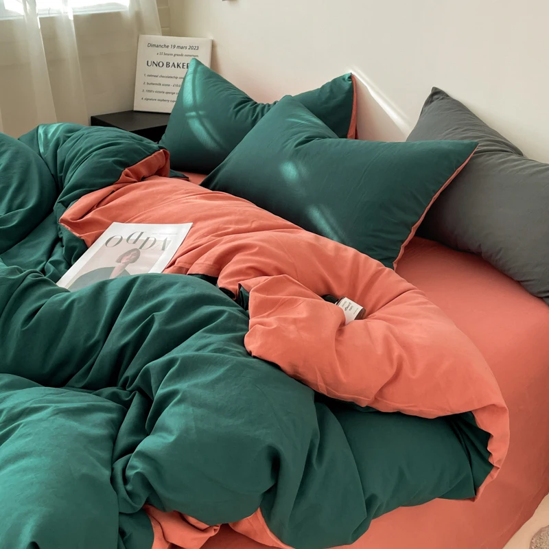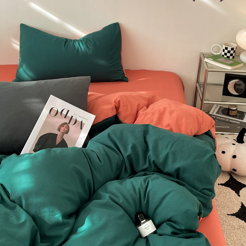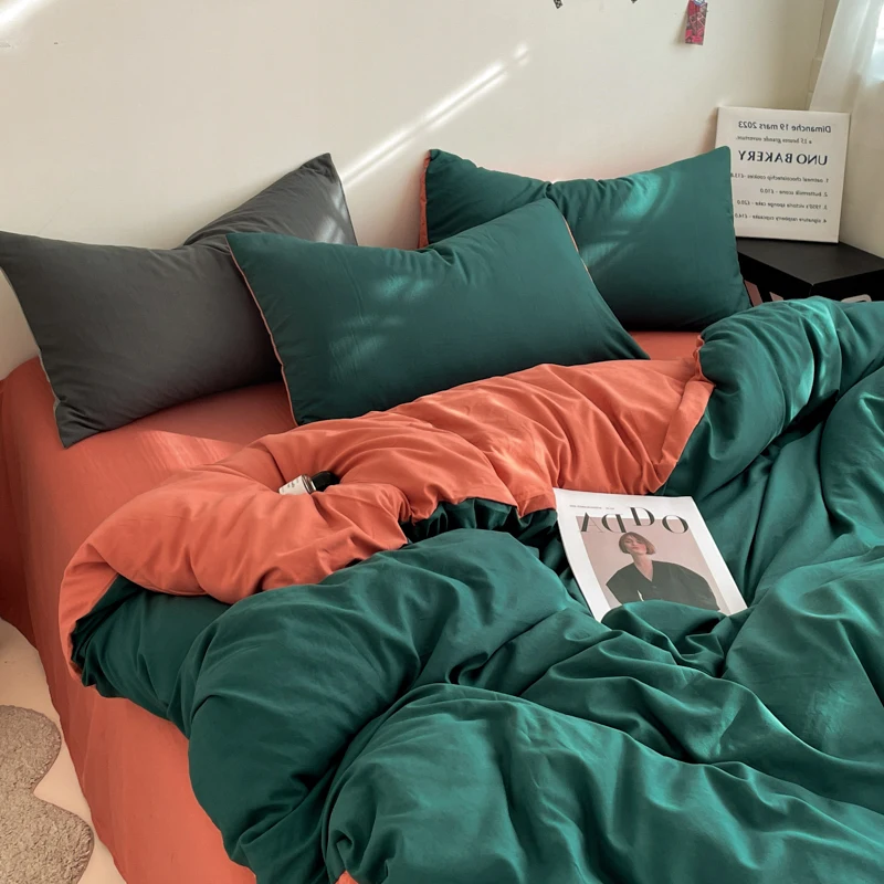 Green Orange Duvet Cover Modern Fashion Solid Color Bedding Set,3pcs Comforter Cover Polyester Quilt Cover with 2 Pillowcases