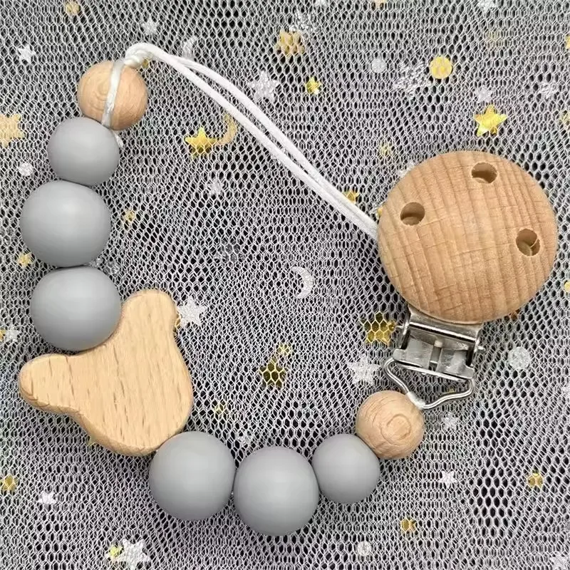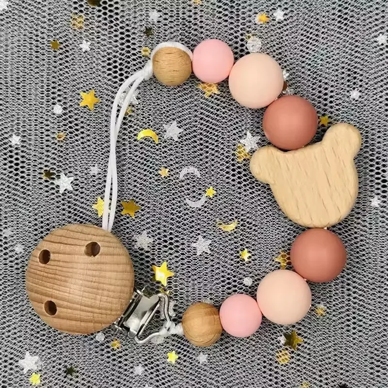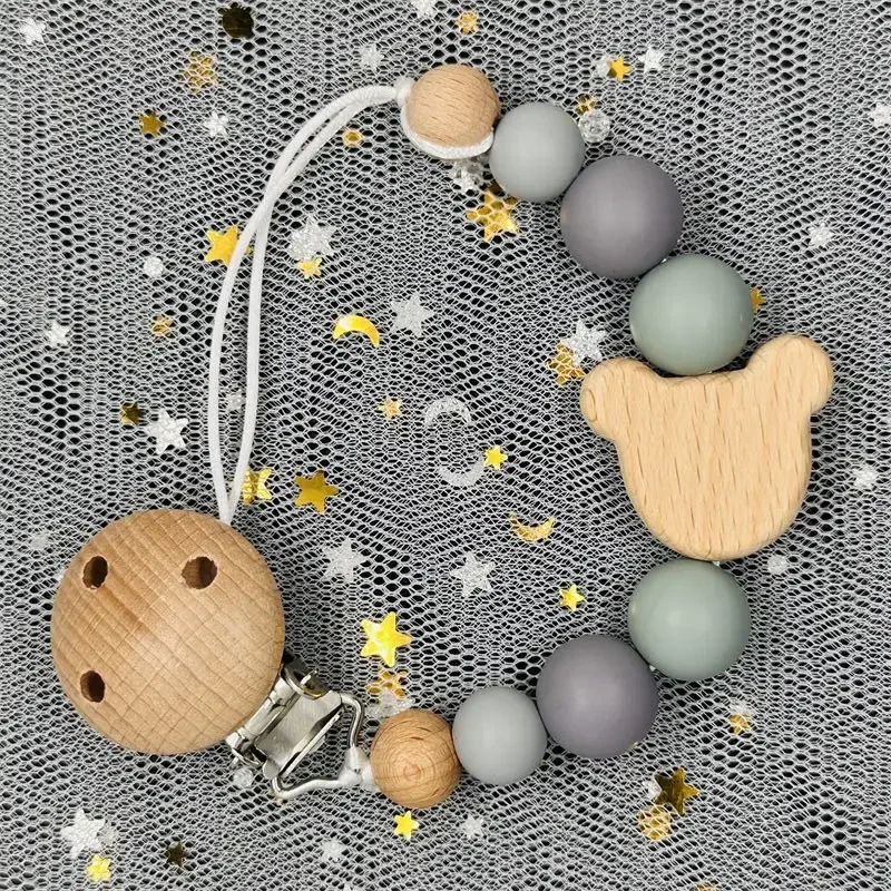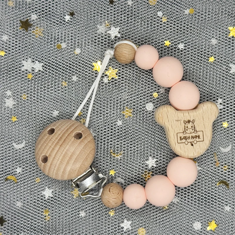Green Squirrel Custom Animal Print Name Wood Personalized Baby Pacifier Chain Clip Bead Dummy Nipple Teethe Pendant Newborn Gift