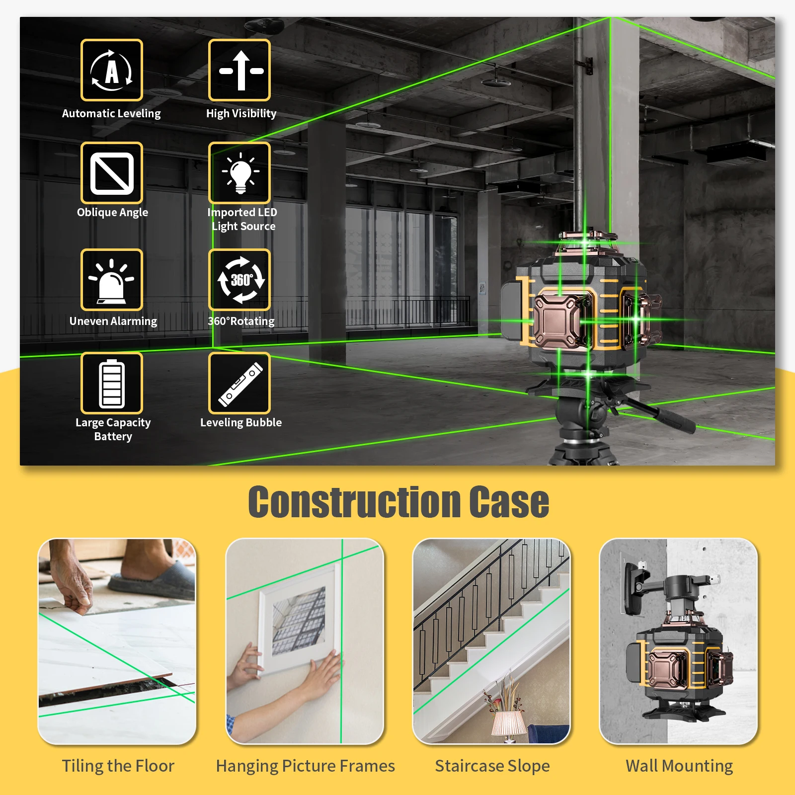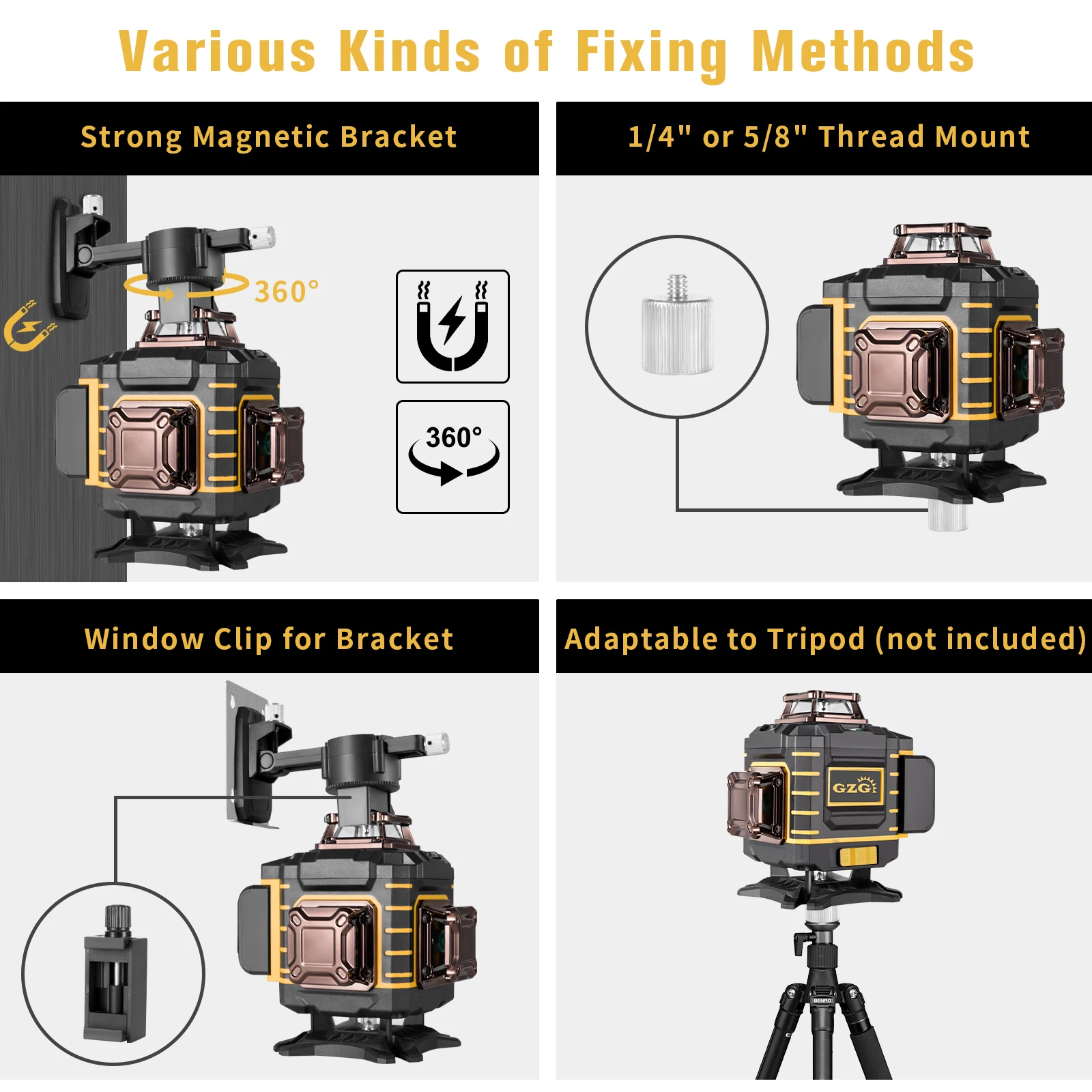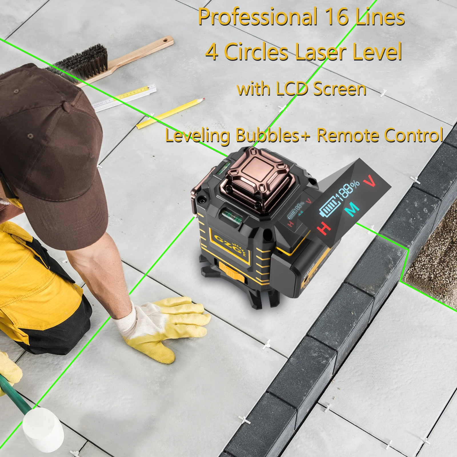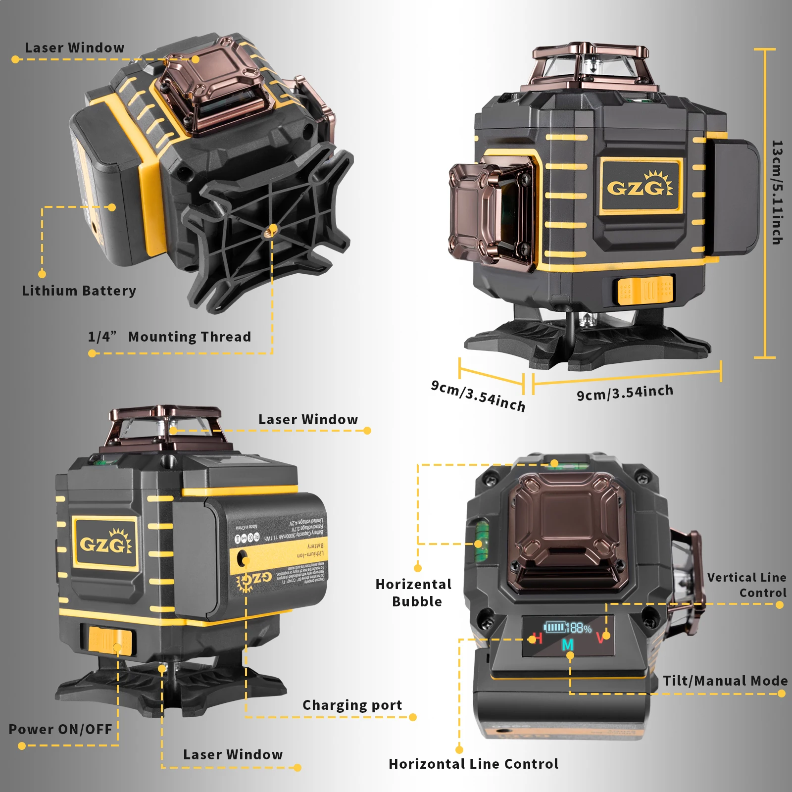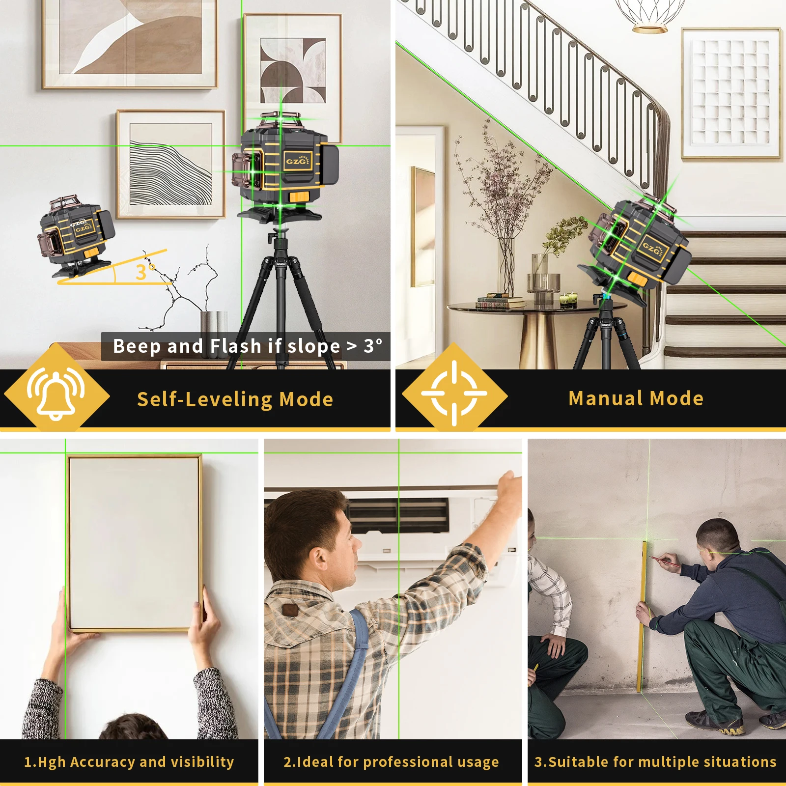GZG Laser Level 360 Self Leveling, 4X360 Laser Level With LCD Screen Green Line Tool Leveling And Alignment Laser Tool With Puls