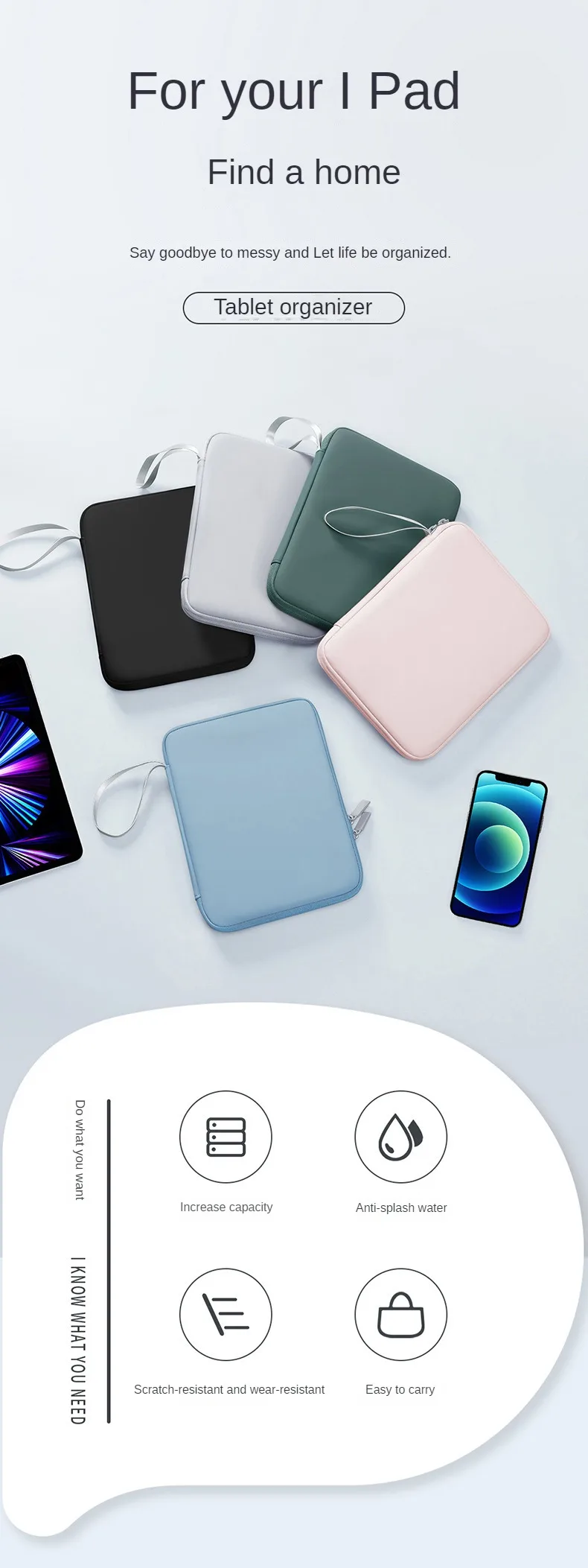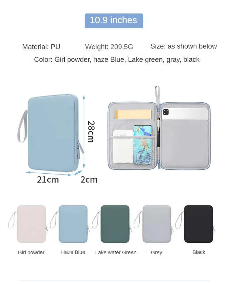 Handbag Sleeve Case for IPad 10th 10.9 Bag Cover 10.2 7/8/9th Pro 11 12.9 Mini 6 Air for Xiaomi Samsung Waterproof Zipper Pouch