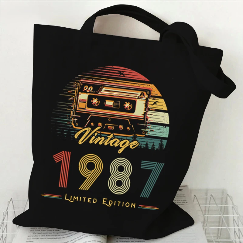 Handbags for Women 1984 Vintage Canvas Shopping Bags 1980~1989 Design Tote Bags for Women Folding Eco-Friendly Shoulder Bag