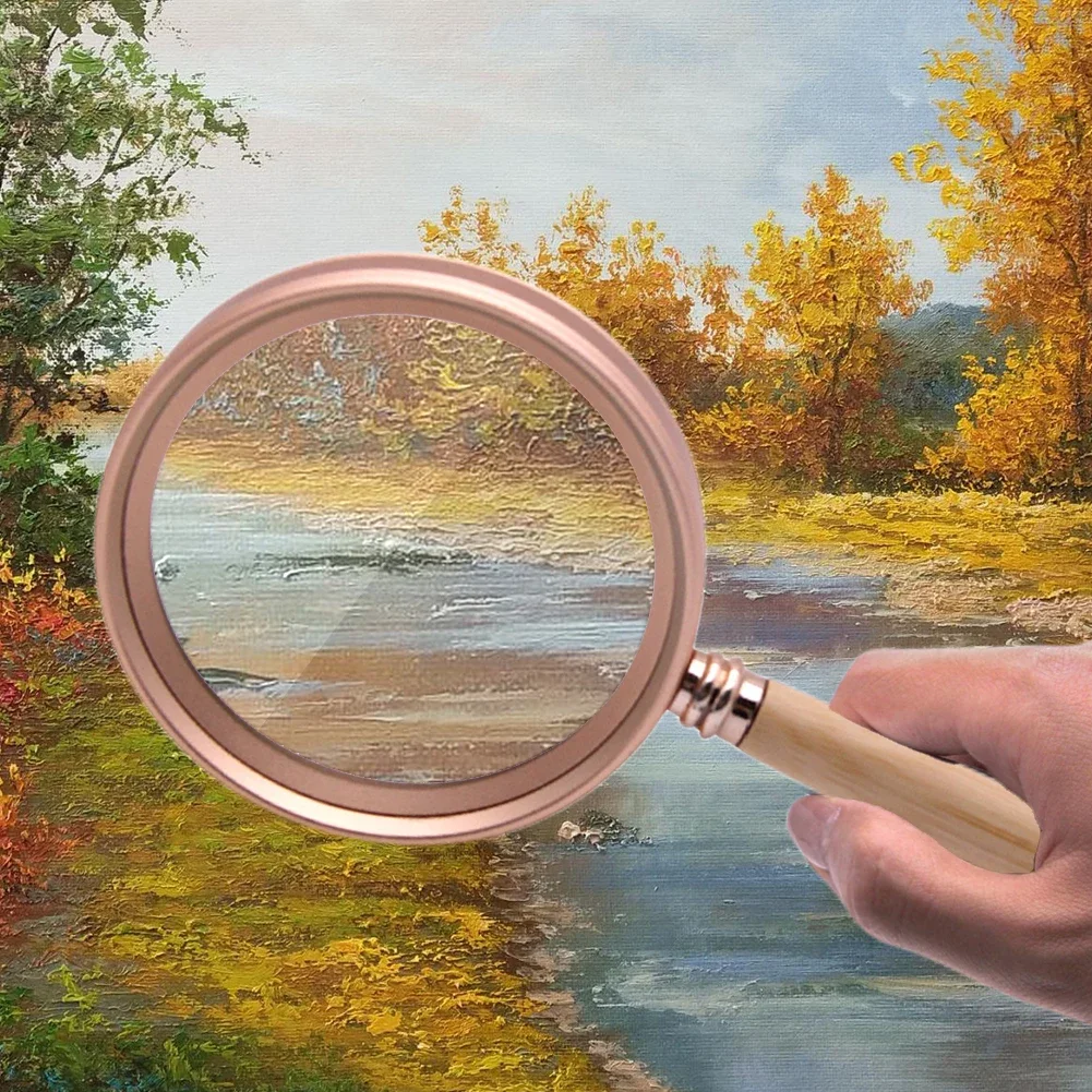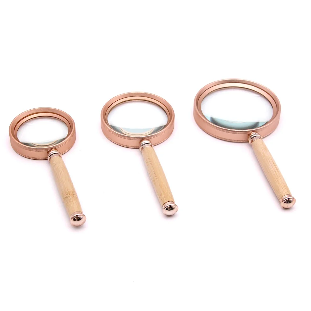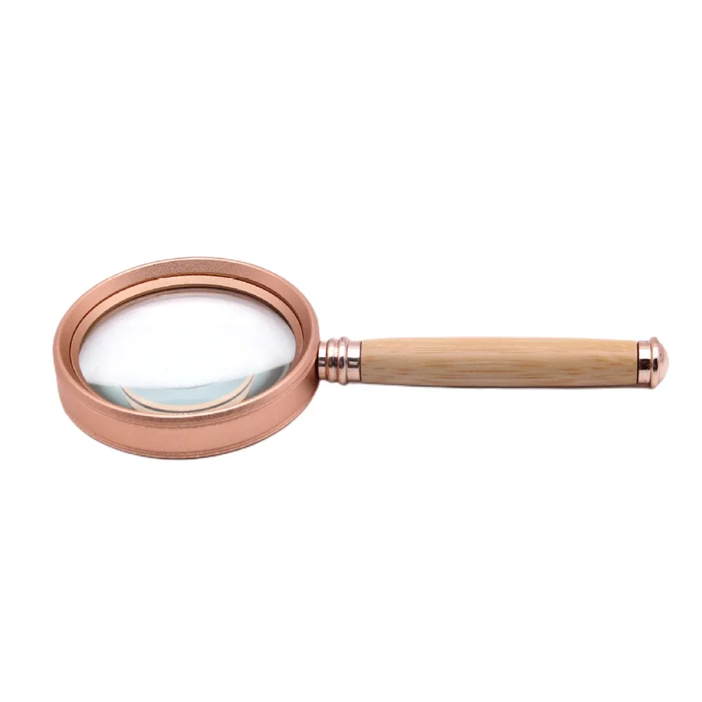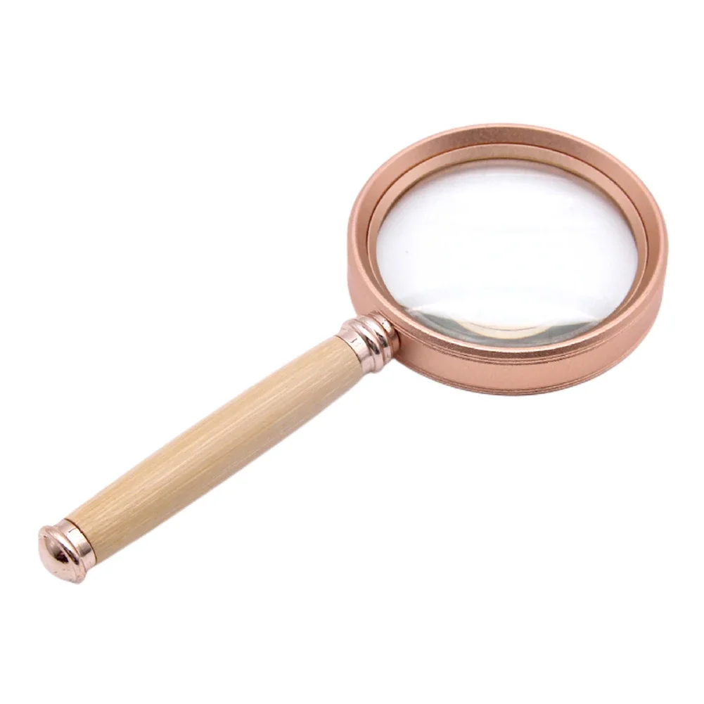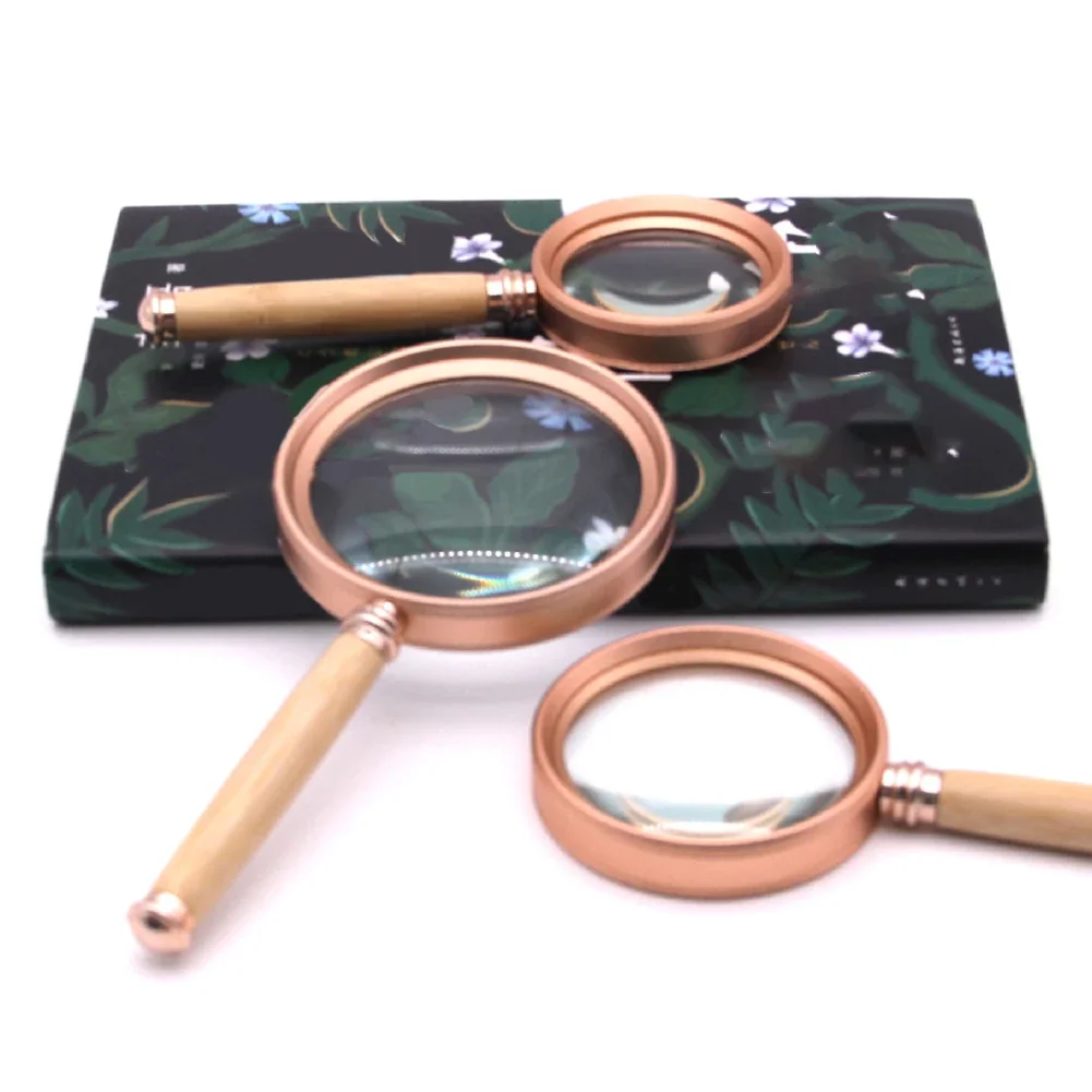 Handheld Magnifying Glass Bamboo Handle 20X/15X/10X Vintage Reading Magnifier Aluminum Alloy Frame Jewelry Magnifier for Reading