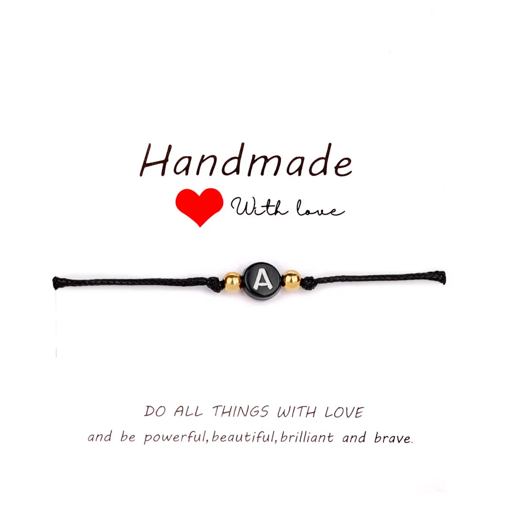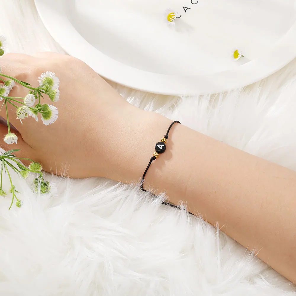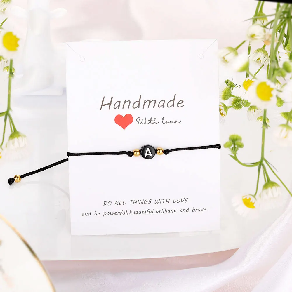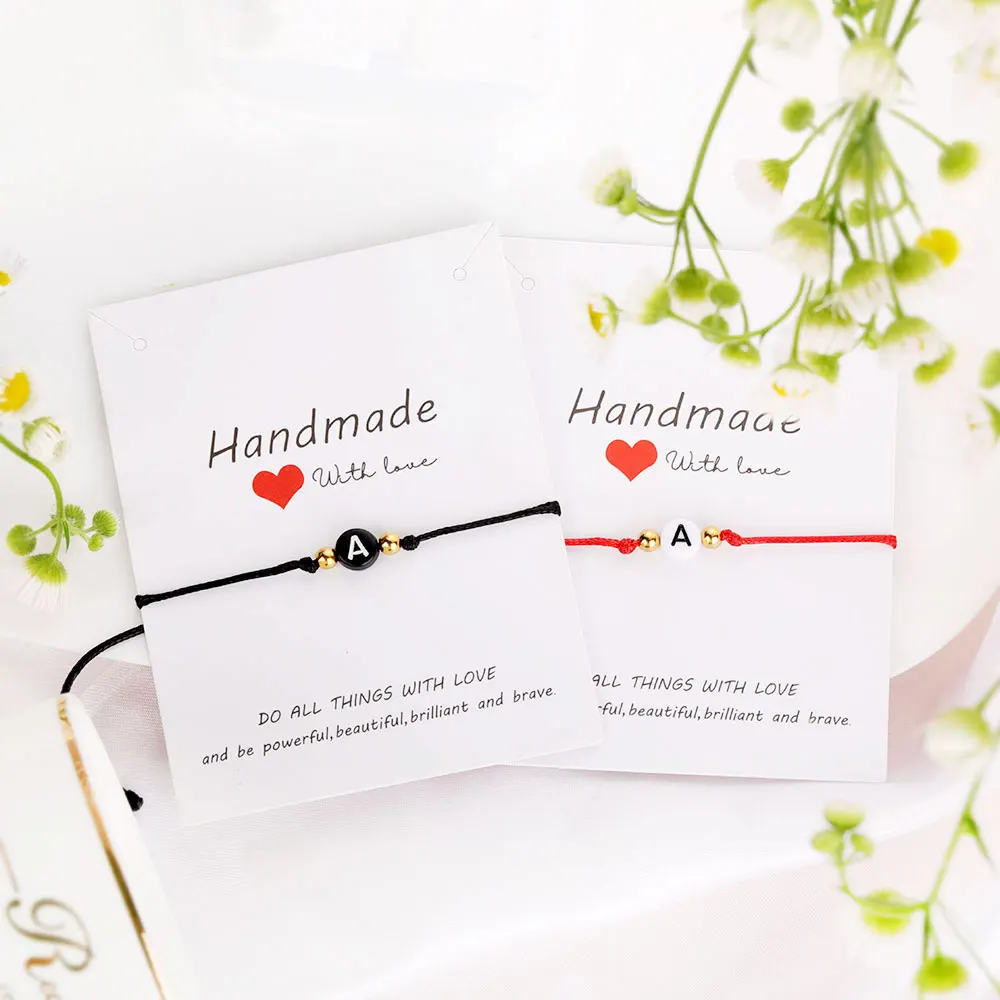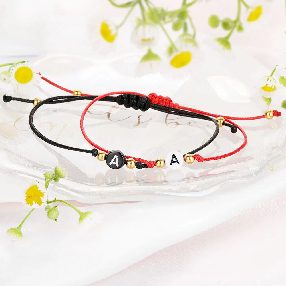 Handmade 26 Letters Black Red Thread String Rope Bracelet Women Men Initials Name Adjustable Bracelets Statement Couple Jewelry