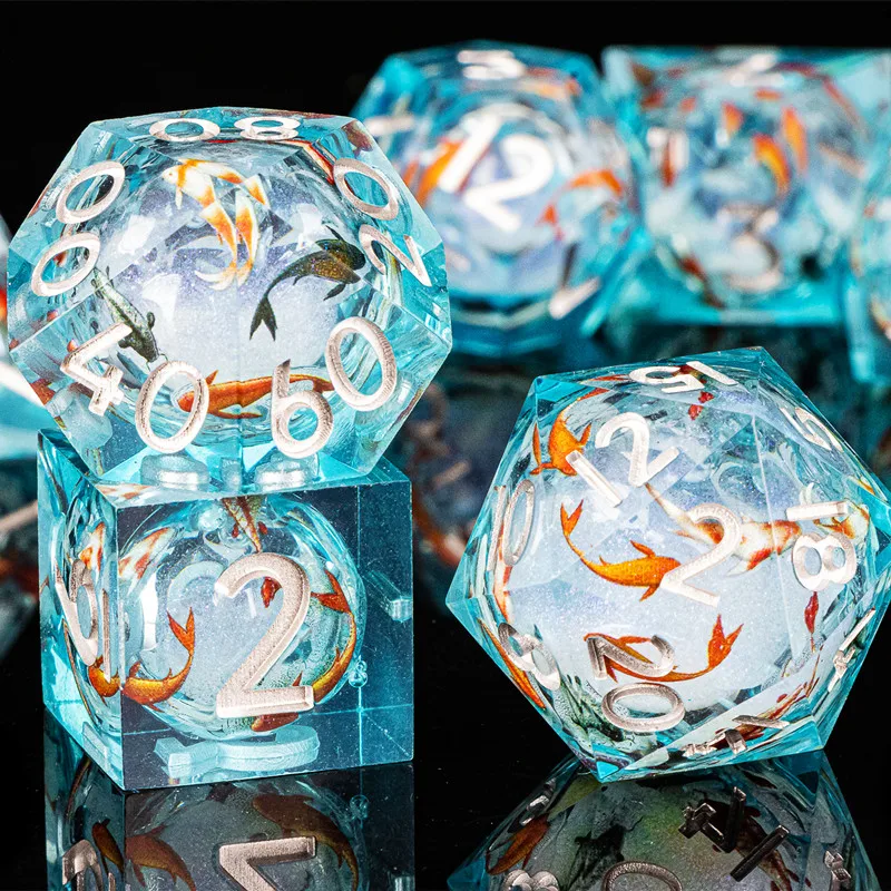 Handmade DnD Carp Liquid Core Dice, Polyhedral Dice Set for Dungeons and Dragons, RPG Dice Set for Board Games,d d dice set