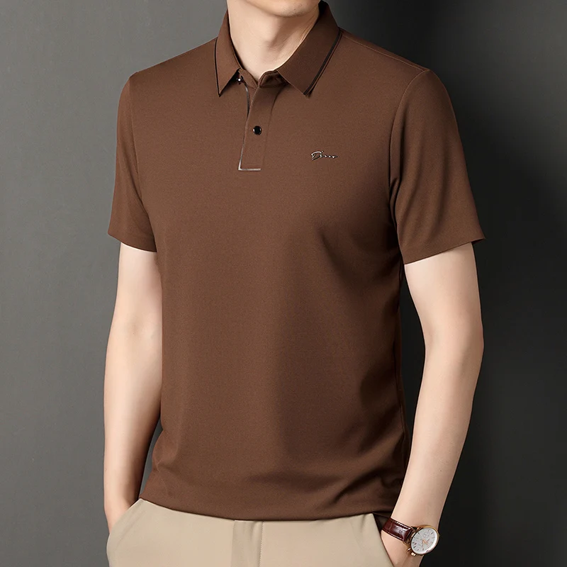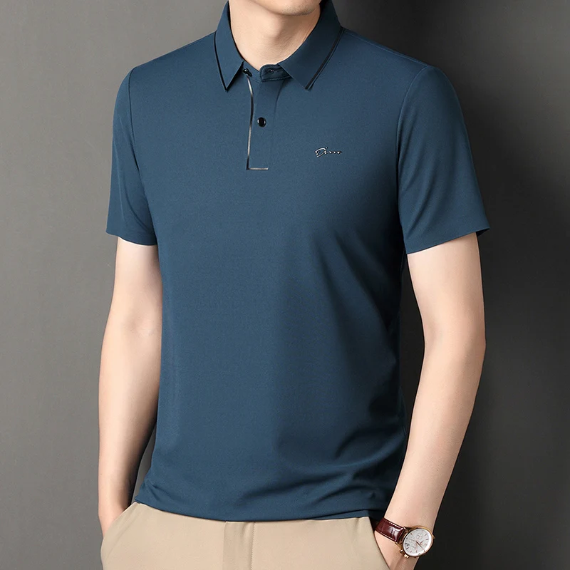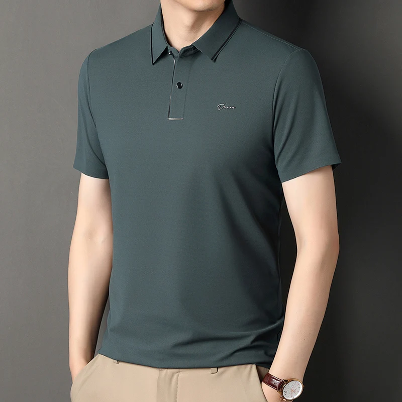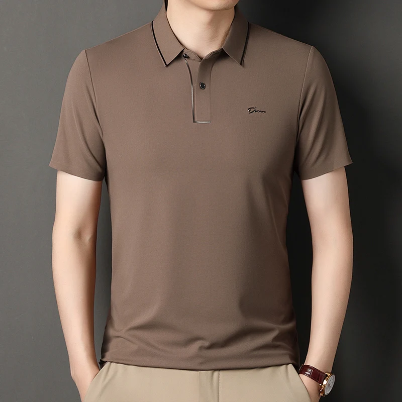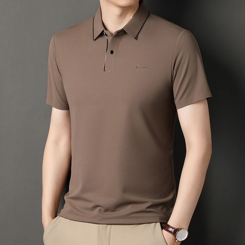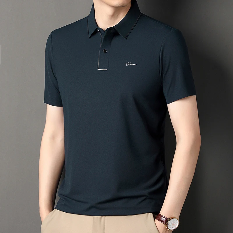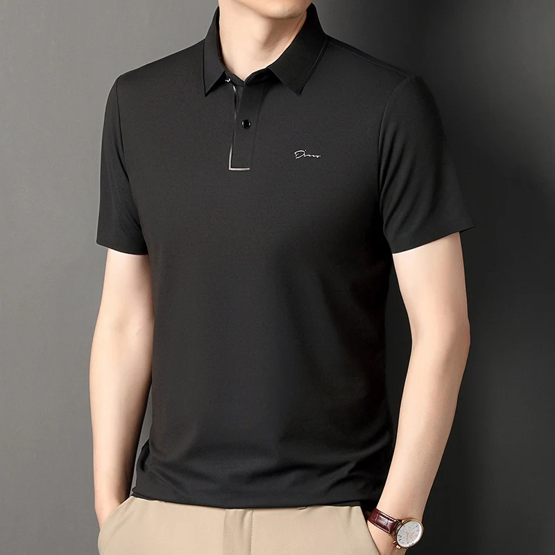 Handsome 2024 Summer Ice Silk Seamless Breathable Polo Shirt Men Short Sleeved Embroidery Casual Lapel T-shirt Men’s Clothing