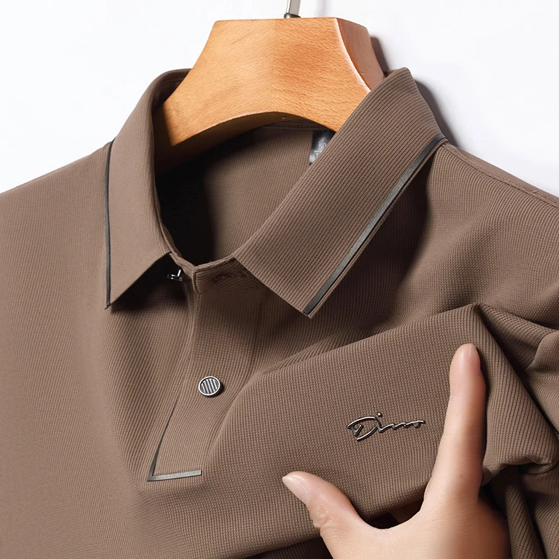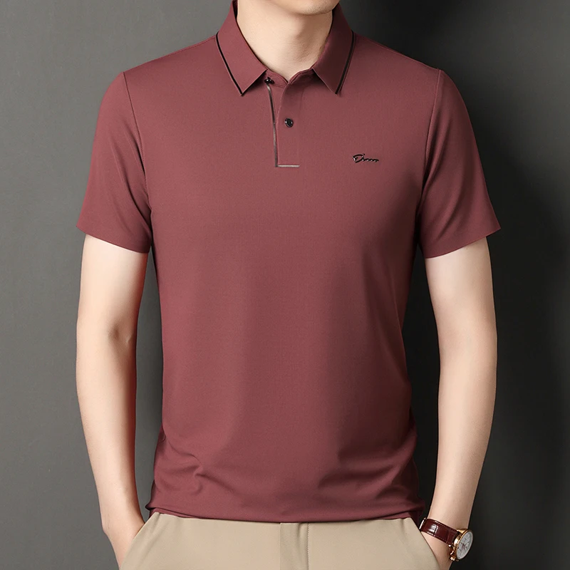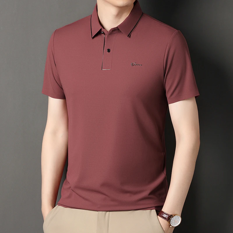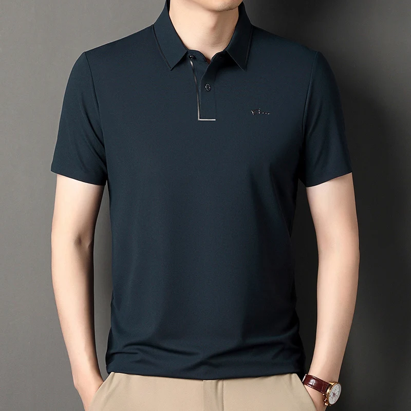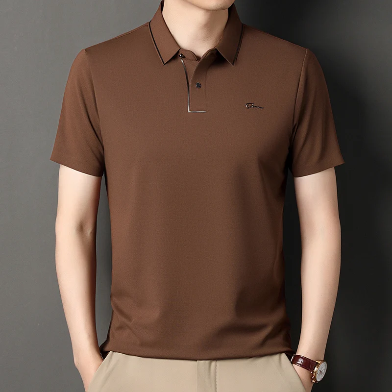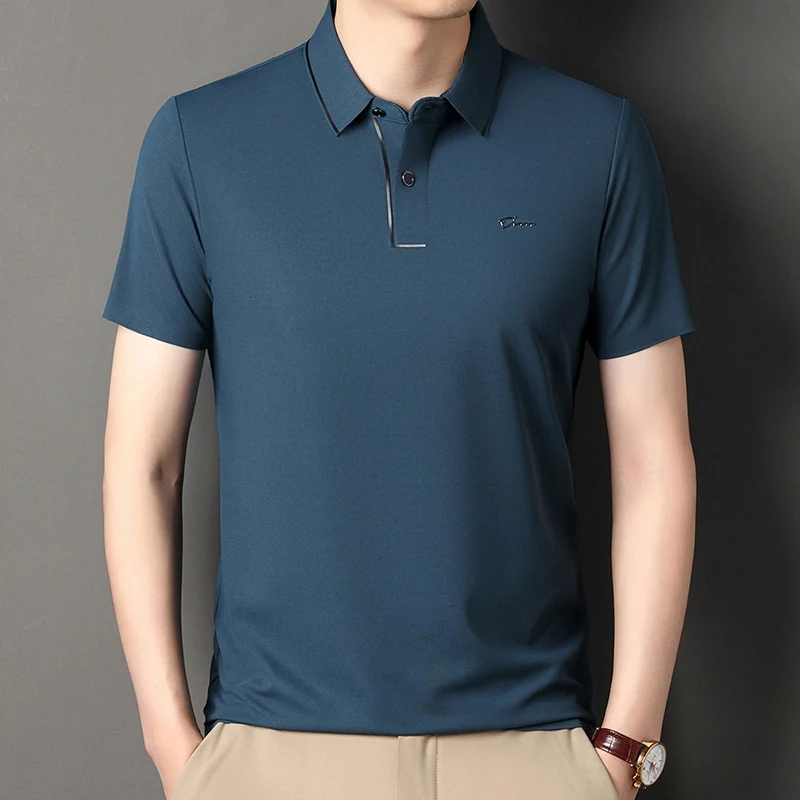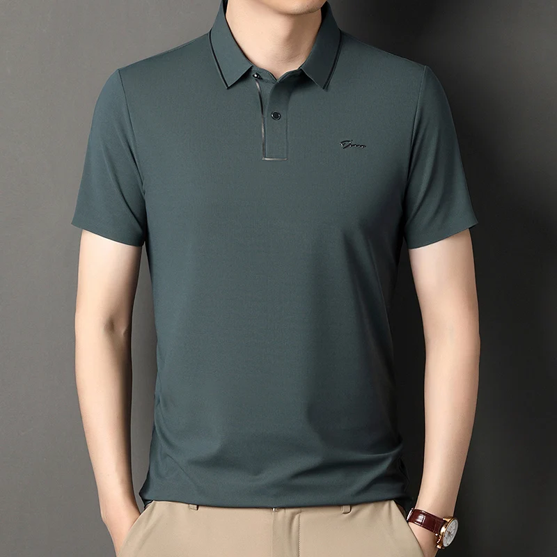Handsome 2024 Summer Ice Silk Seamless Breathable Polo Shirt Men Short Sleeved Embroidery Casual Lapel T-shirt Men’s Clothing