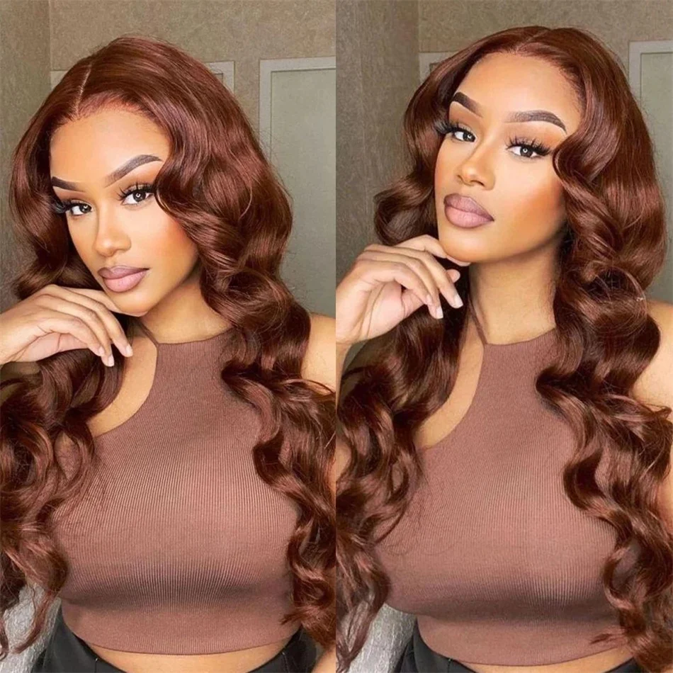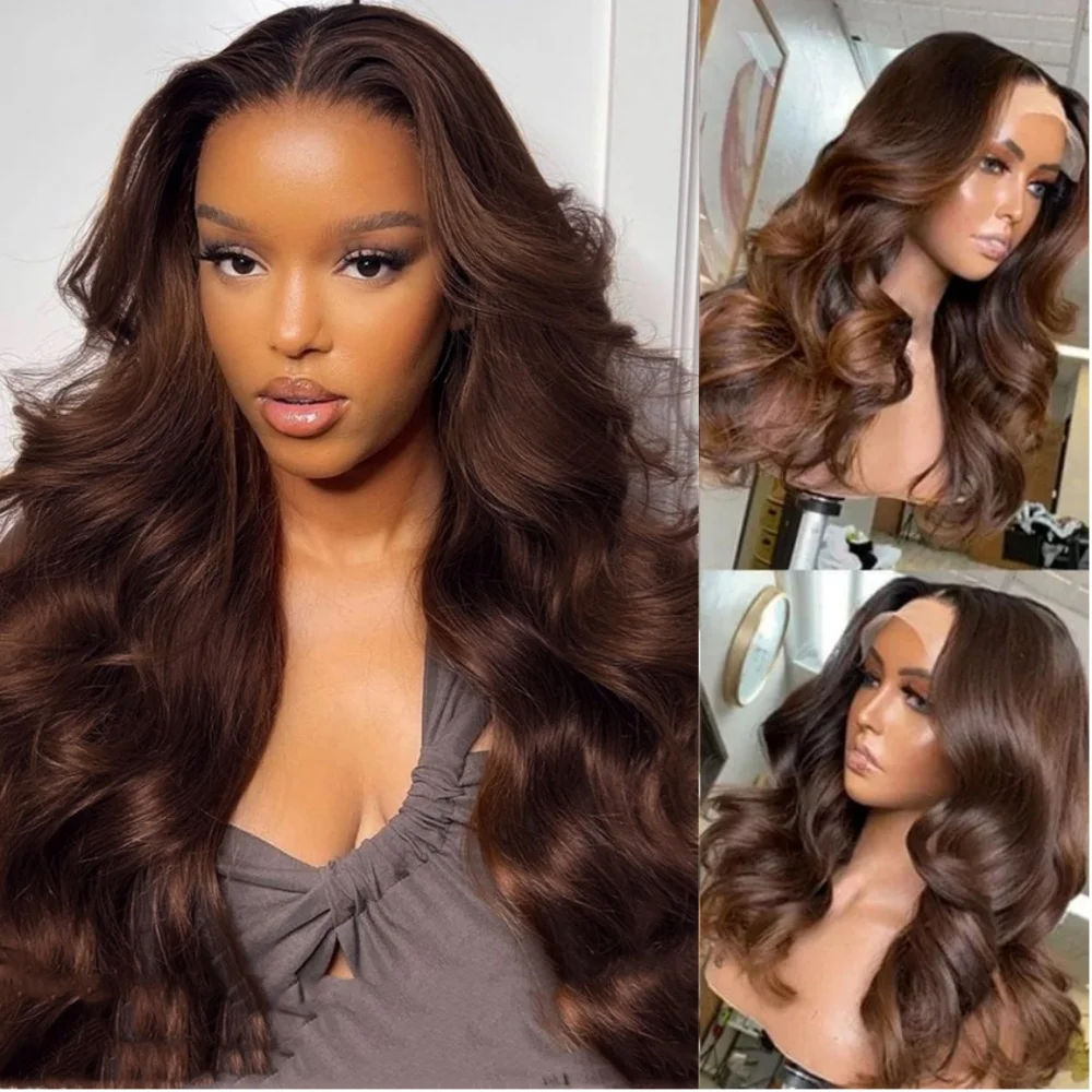HD Chocolate Brown Body Wave Lace Frontal Wigs Brown Colored 13×4 Lace Front Human Hair Wigs For Women Brazilian Hair Preplucked