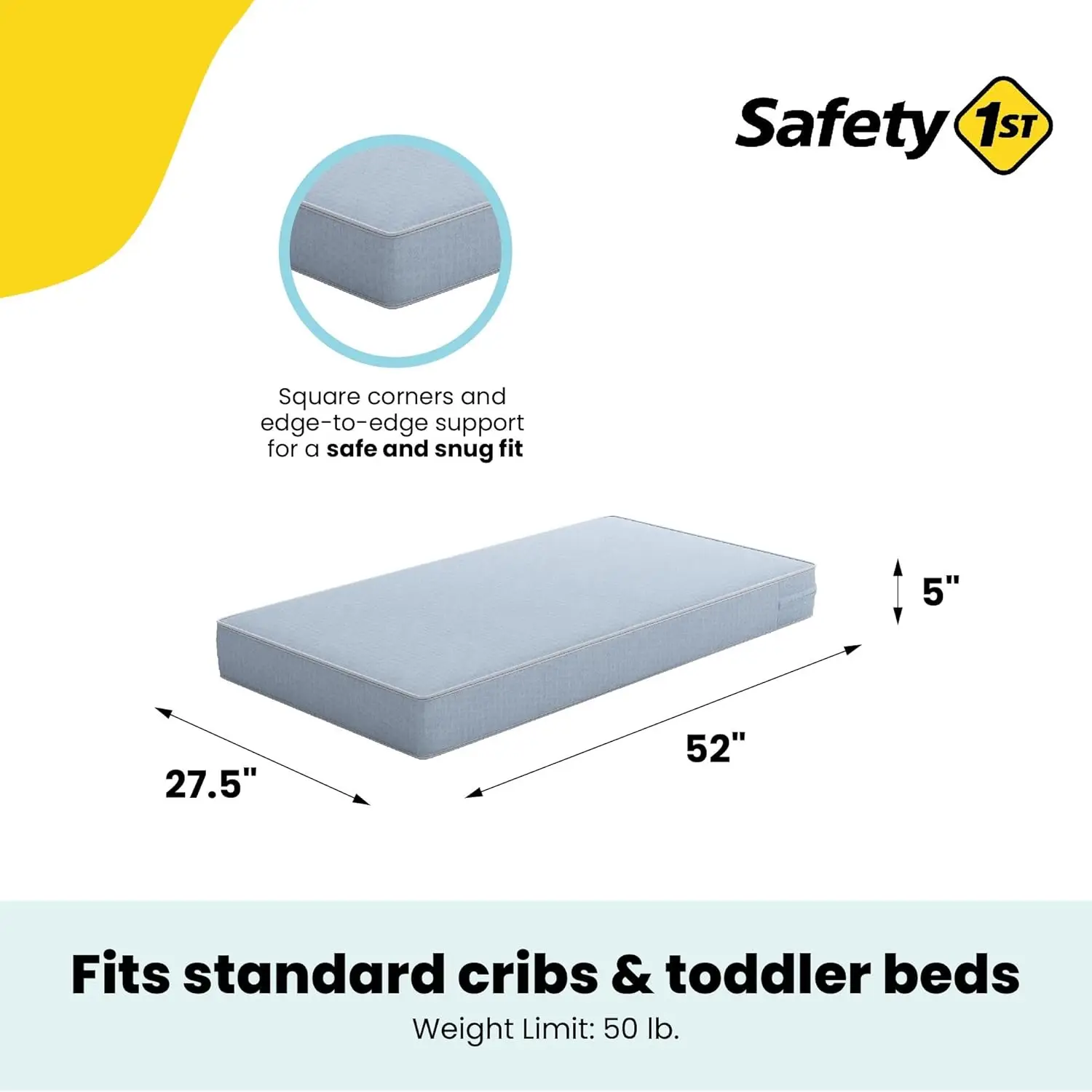 - ULTRA FIRM SUPPORT: Recommended crib mattress firmness to provide infants with optimal support and a safe sleep for their growing bodies. Designed to fit standard size cribs and toddler beds; dimensions: 52″L x 27.5″W x 5″H. Weight limit: 50 lb