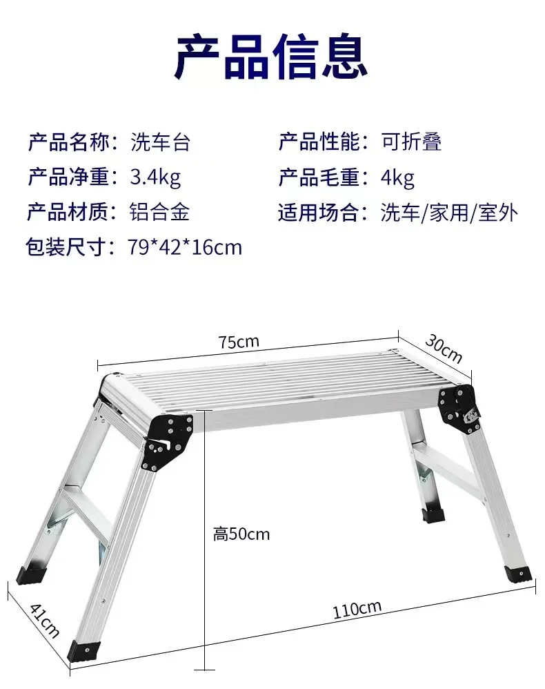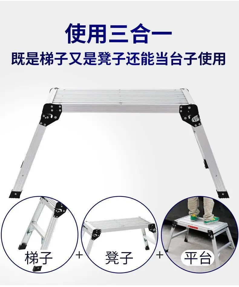 Heavy-Duty Folding Work Platform 30x12x20 Inch Aluminum Ladder Stool 660 lbs Load Capacity Anti-Slip Safety Design