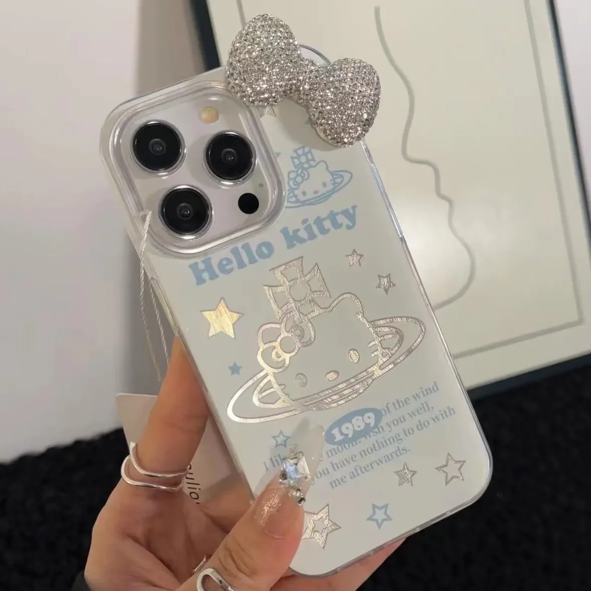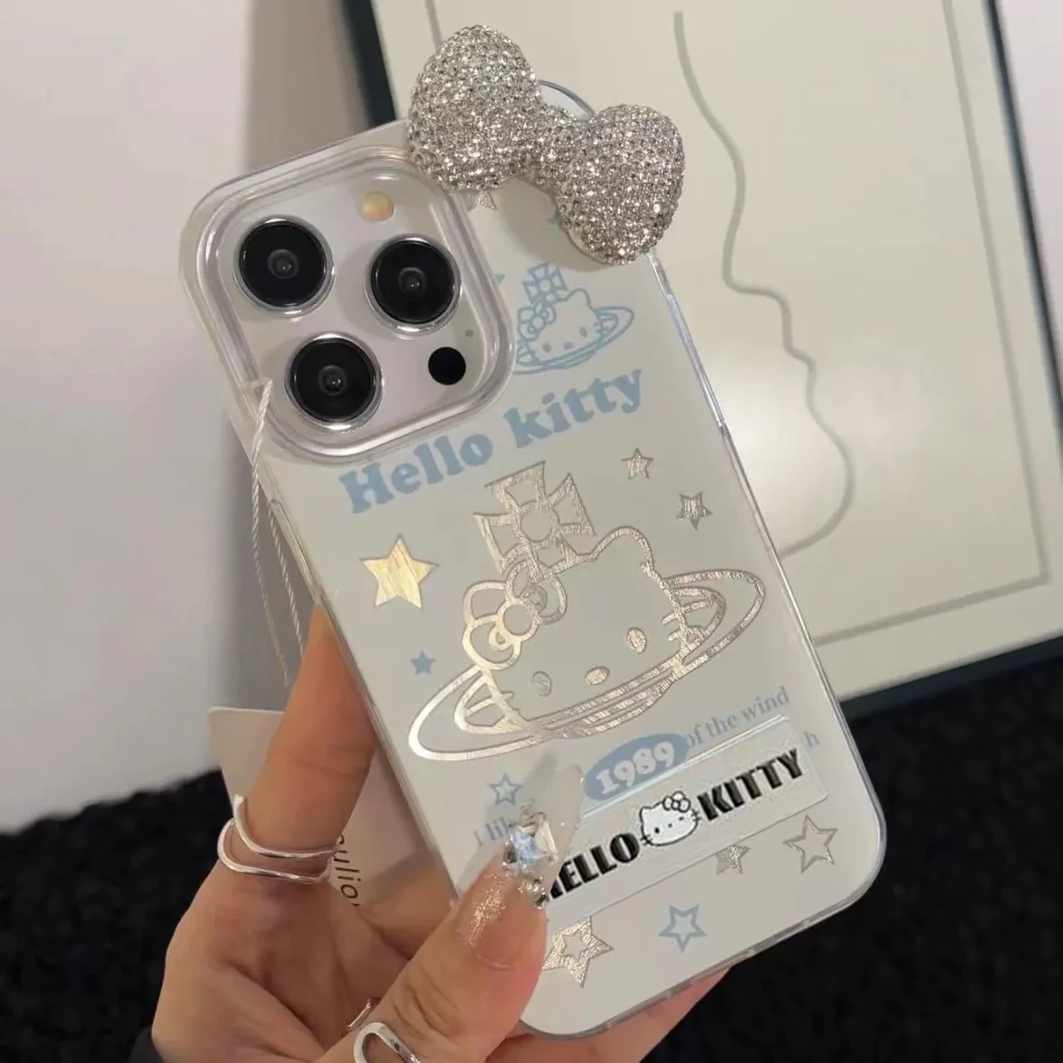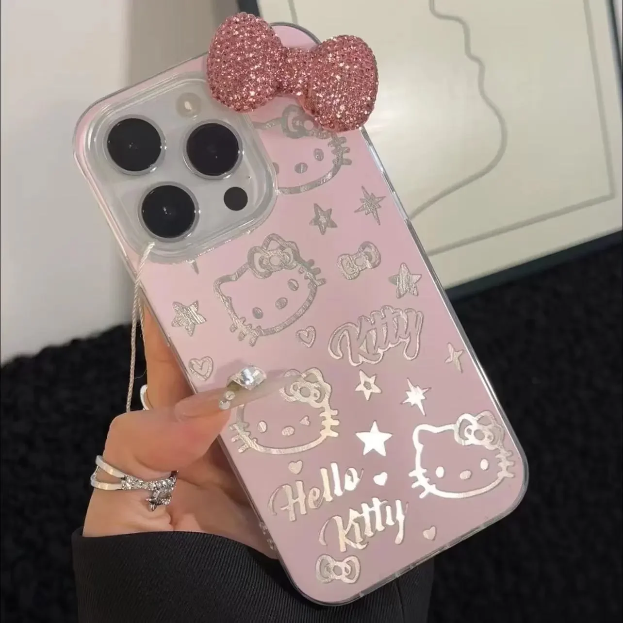 Hello Kitty Pink Diamond Bow Cute Bracket Phone Case For iPhone 16 15 14 12 13 11 Pro Max XR XS MAX 7 8 PLUS MINI Y2K Girl Cover