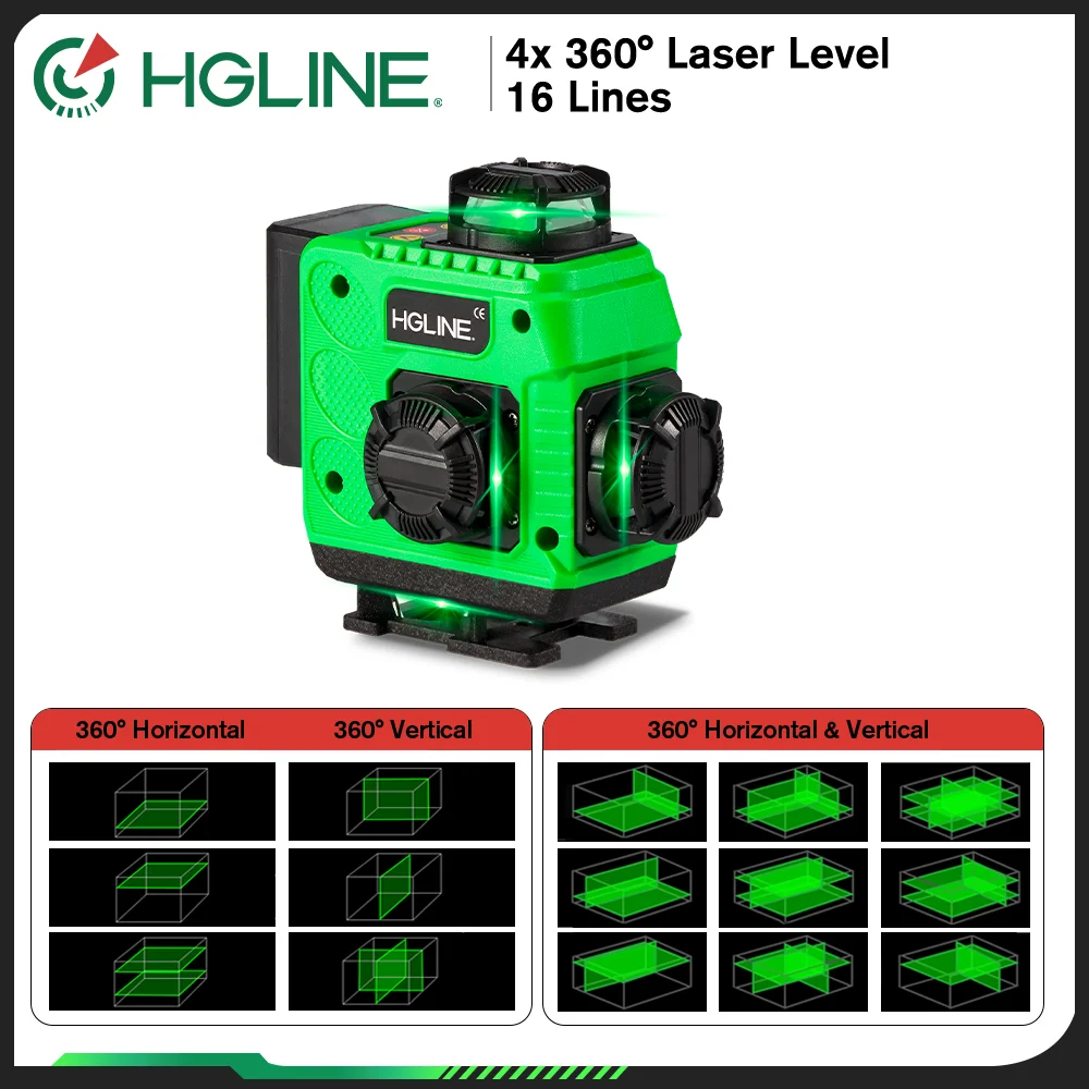 HGLINE 16 Lines 4D Laser Level Green Line Self-Leveling 360° Horizontal Vertical Super Power Laser Level with APP Remote Control