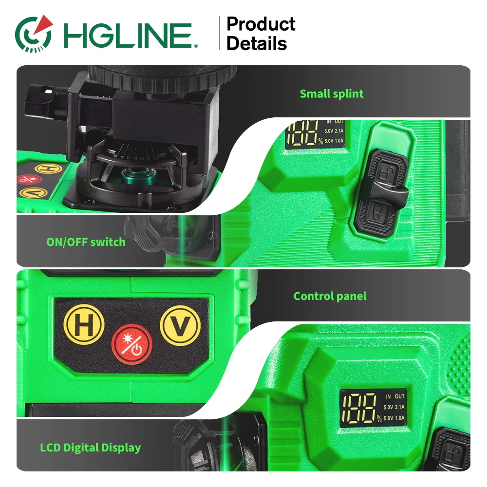 HGLINE 16 Lines Laser Level Green Line APP Remote Control Self-Leveling 360° Horizontal Laser Level With Charged Amount Display