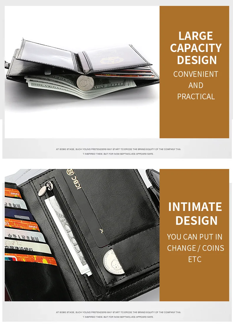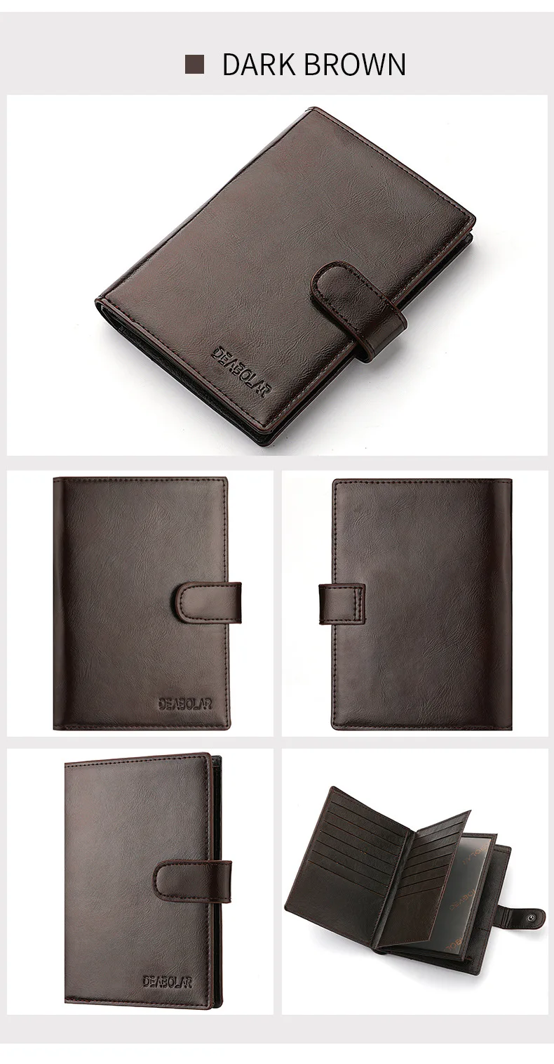 High Capacity Men’s Passport Leather Wallet Multiple Card Slots and A Clear ID Window Vintage Business Card Bag