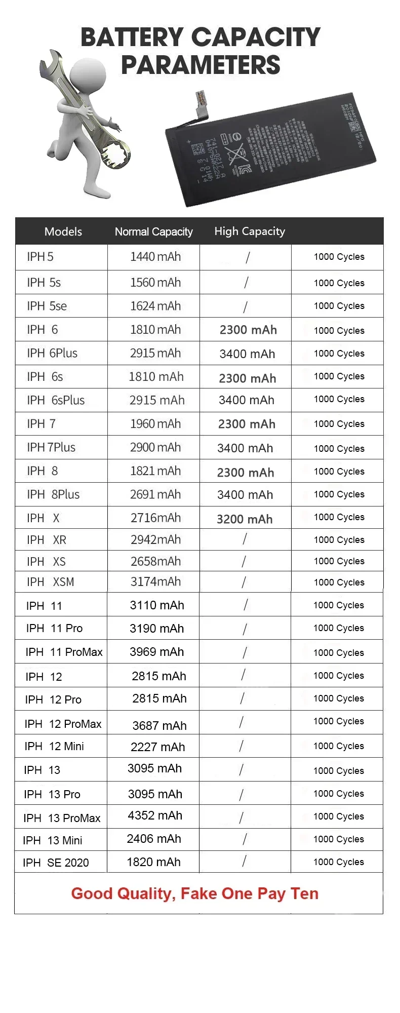 All models above XR on the market will not display battery health, which will not affect the function of the phone. We promise to sell high-quality batteries. In the independent scene, you can watch videos, play games and make calls for 5 hours, surf the Internet for 12 hours, and stand by for 60 hours.(The new battery needs to be used for a week, and the performance will reach the best after 3-5 cycles.)