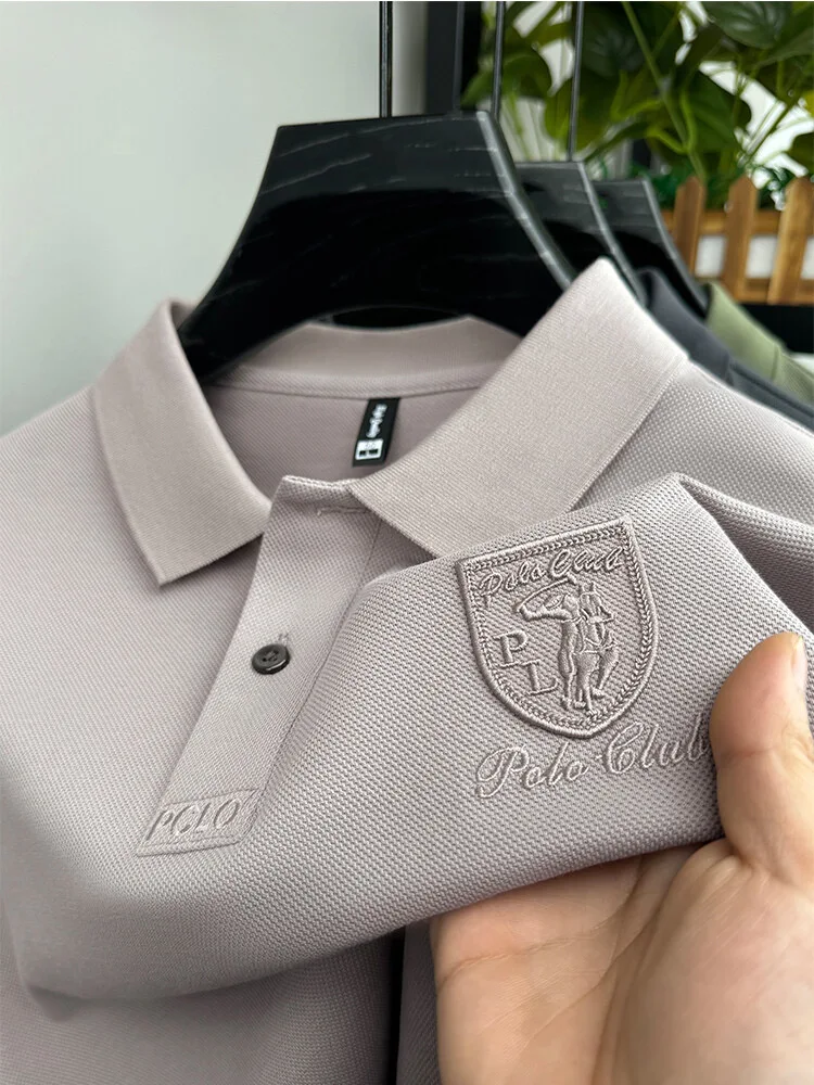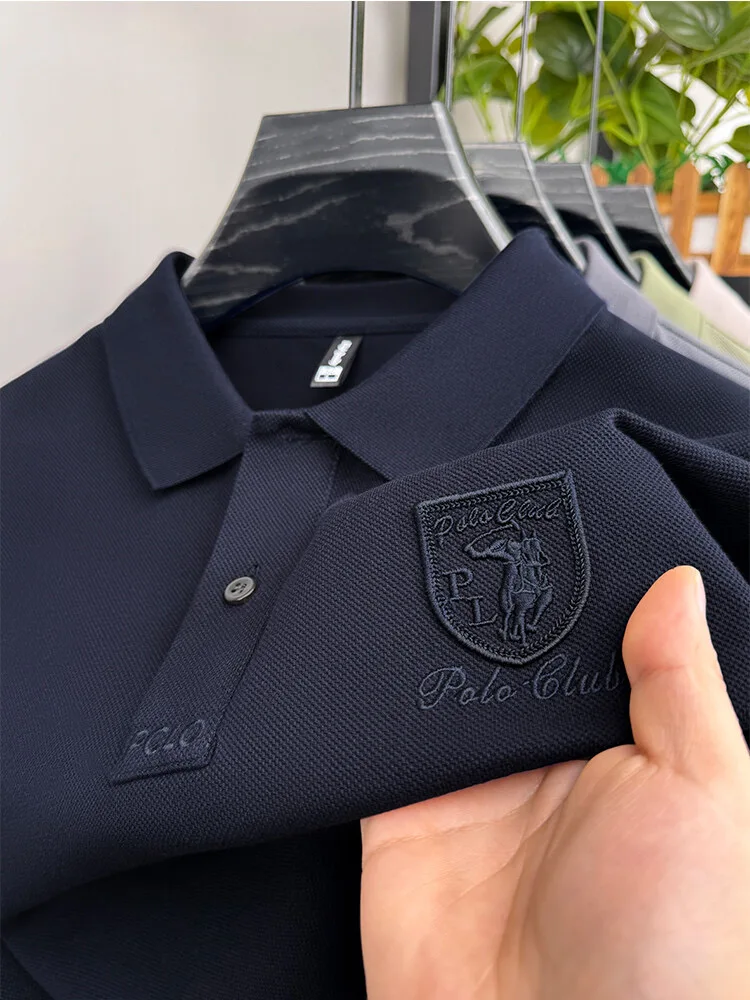 2023 New Spring and Autumn Fashion Simple Polo Collar Long Sleeve Casual Ice Silk Light Cotton Business Style Men's Polo Shirt