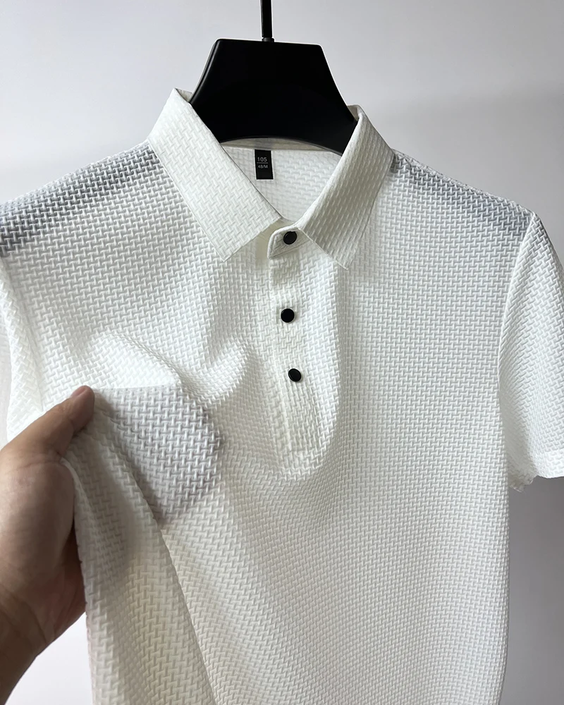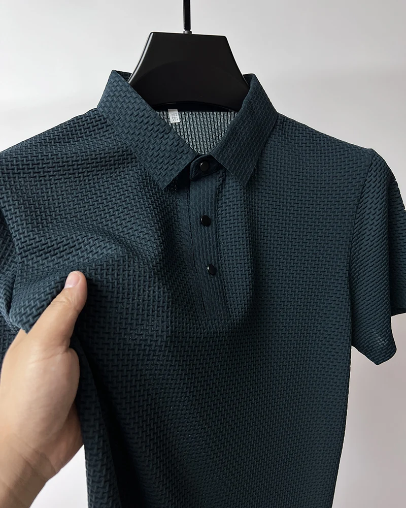 High End Embroidered Silk Knitted Hollow Polo Shirt for Men’s Summer Korean Fashion Business Casual Breathable Short Sleeved Top