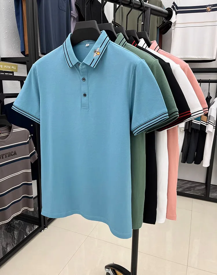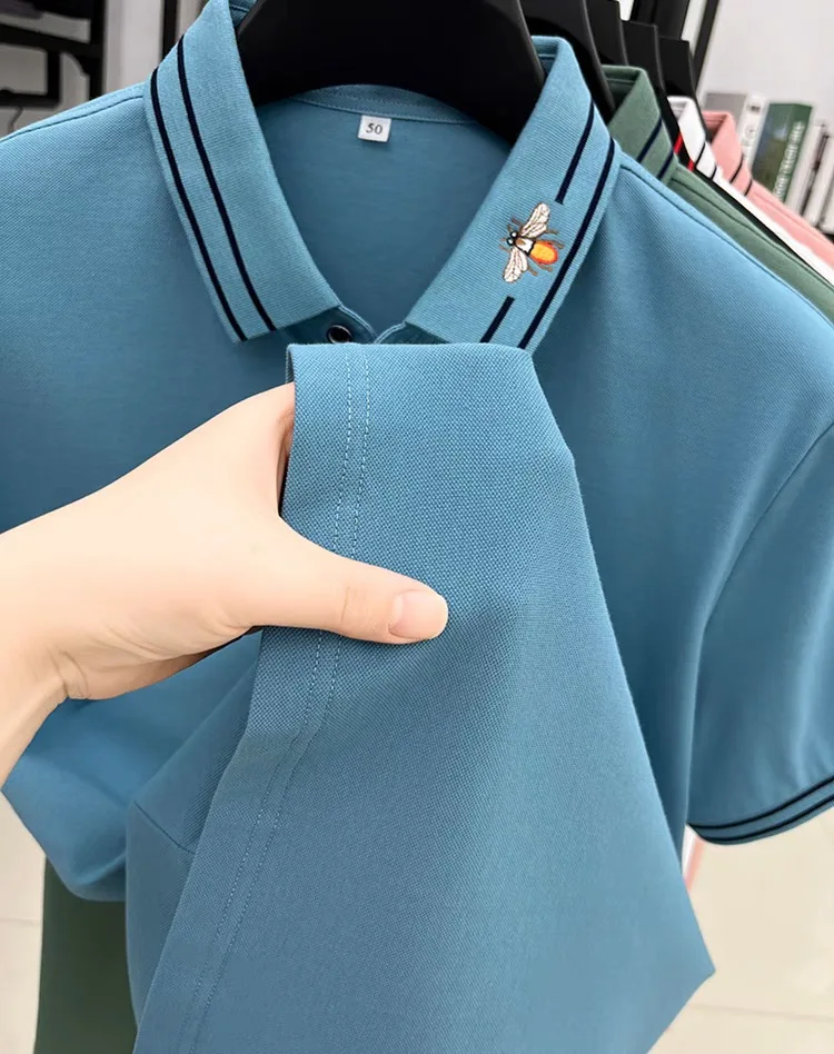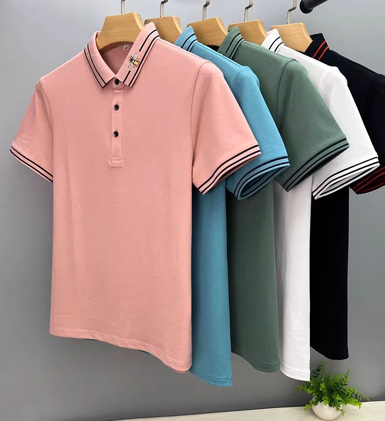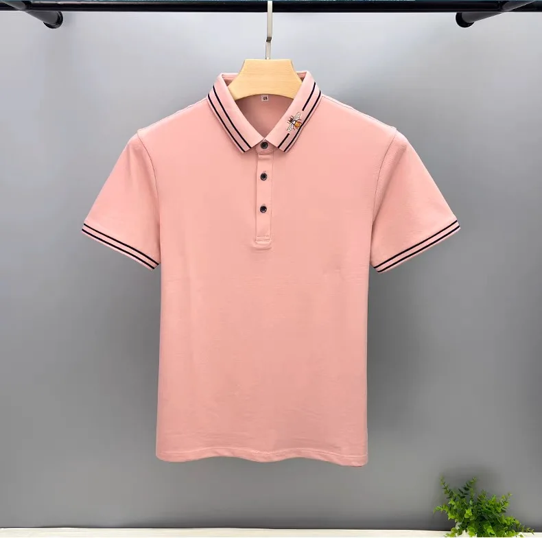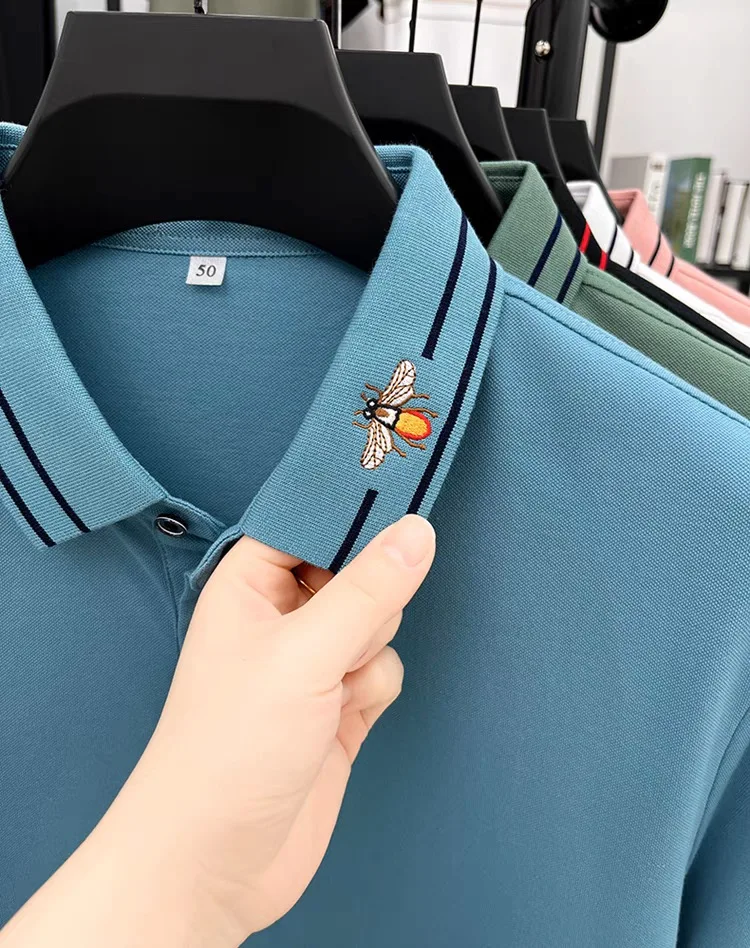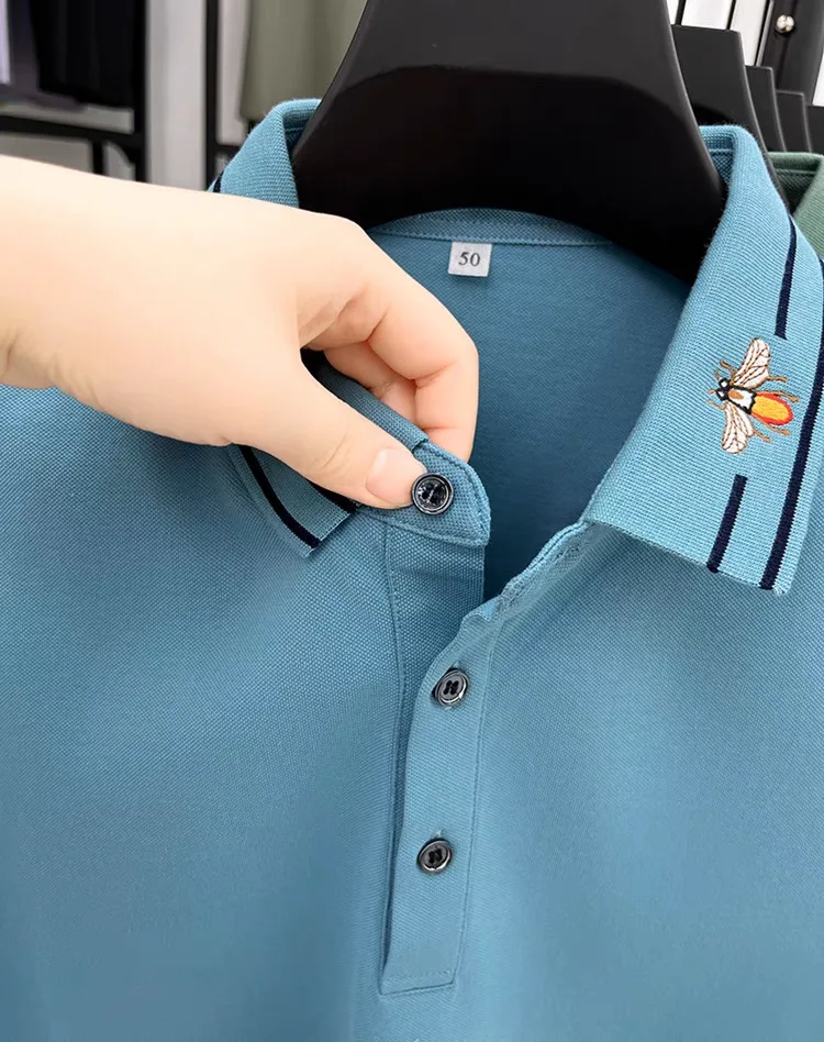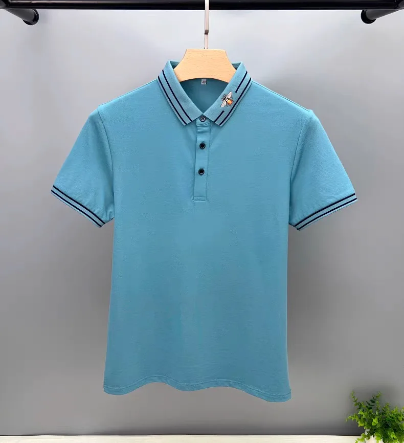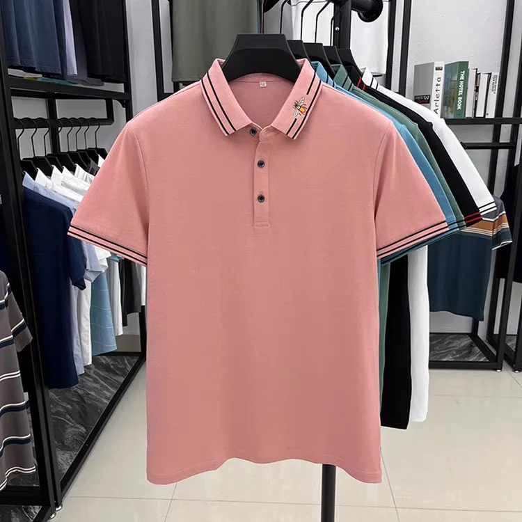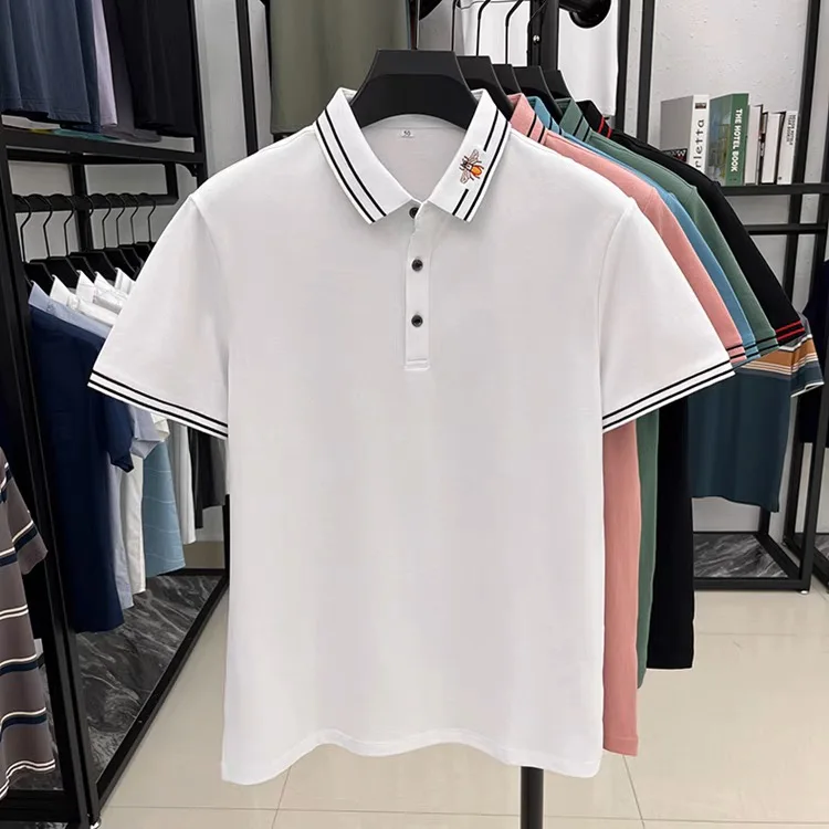 High end silk cotton polo shirt short sleeved cool feeling men’s top 2024 summer brand bee print breathable casual lapel T-shirt