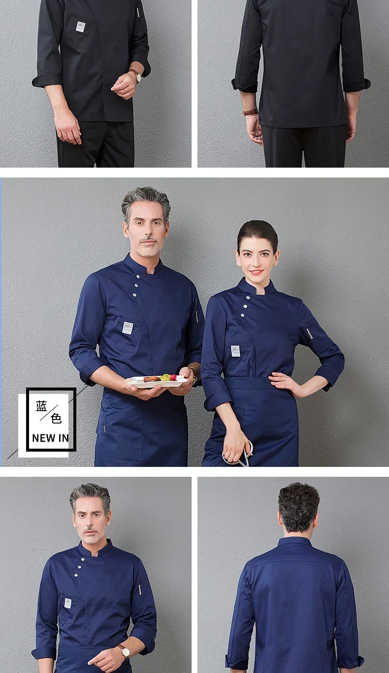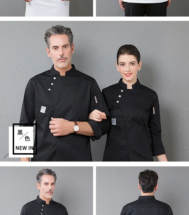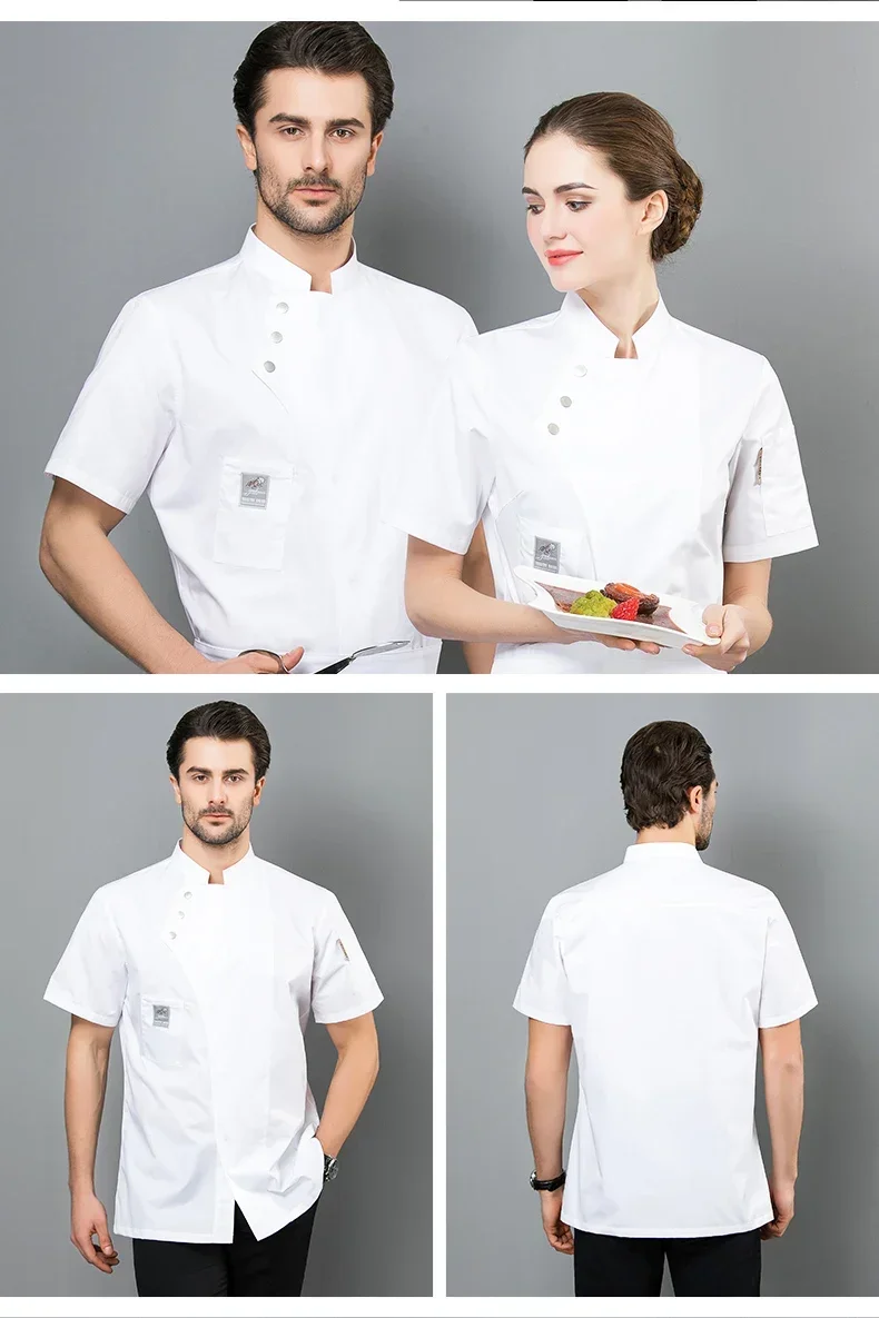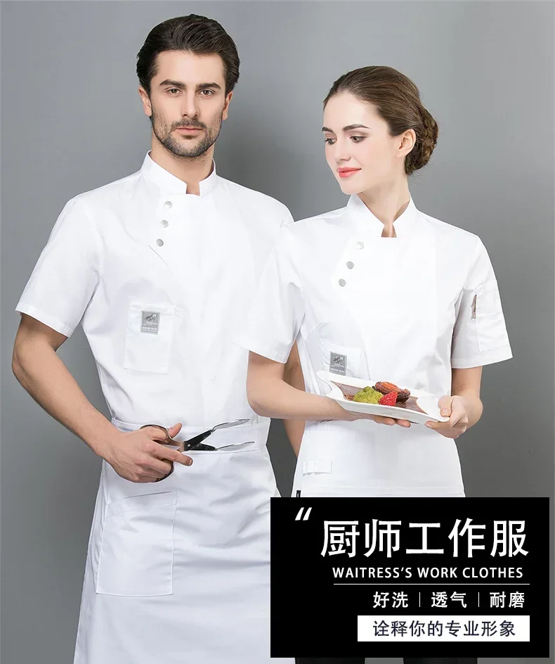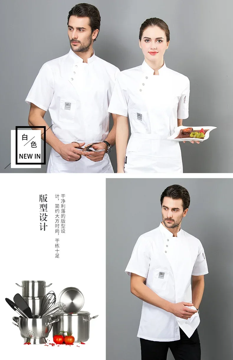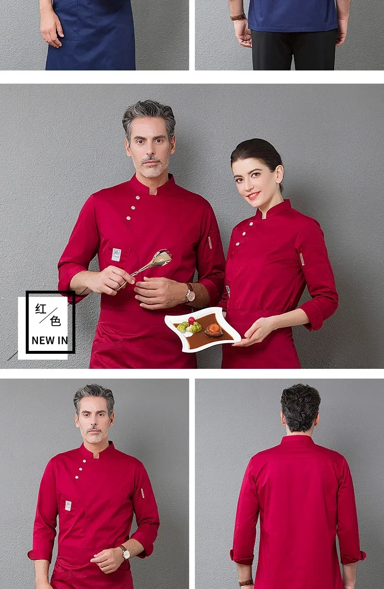 High End Solid Chef Uniform Restaurant Cook Jacket Short Long Sleeve Chef Coat Apron Set Men Women Kitchen Waiter Work Wear