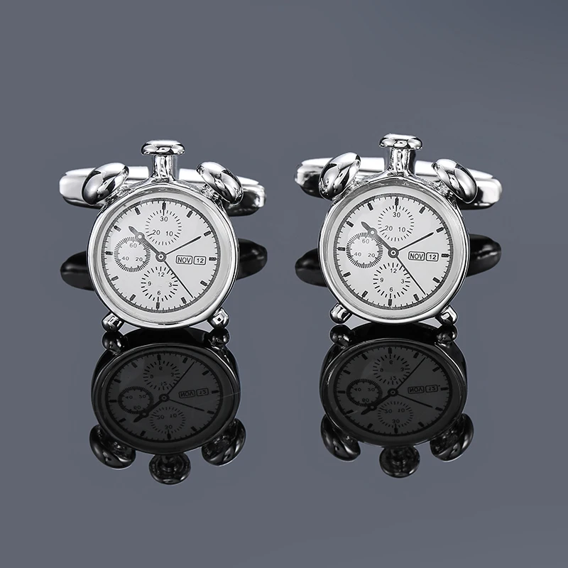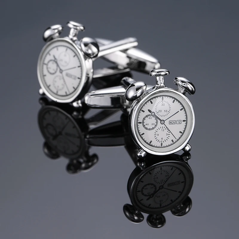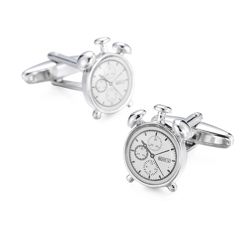 High quality alarm clock cufflinks fashionable French shirt badge brass material brand watch design men’s wedding cufflinks