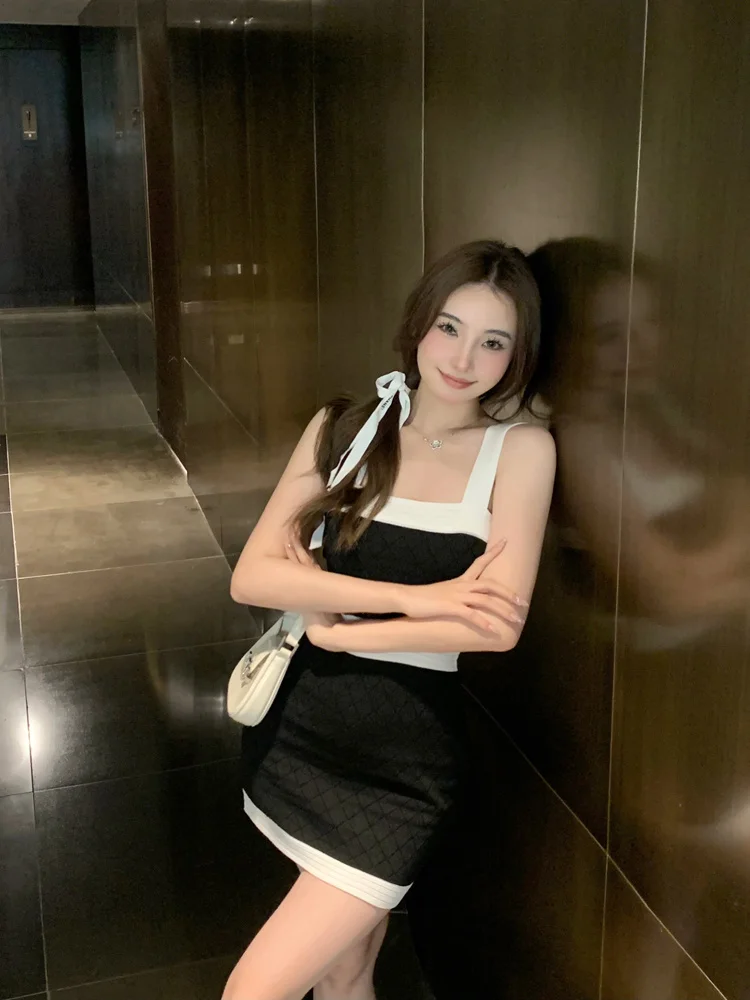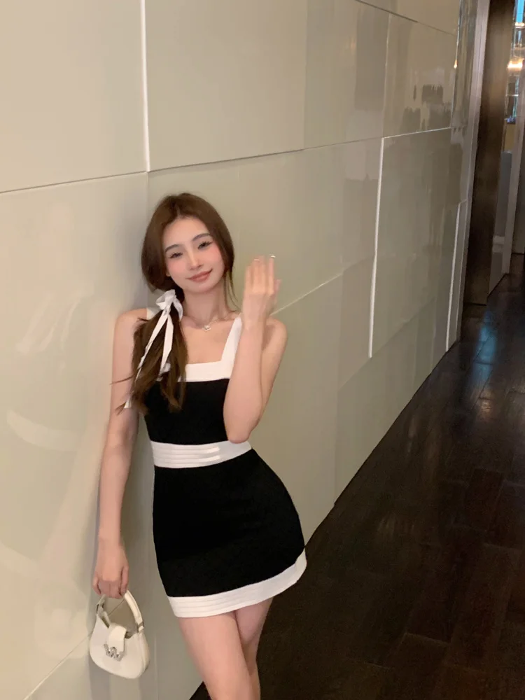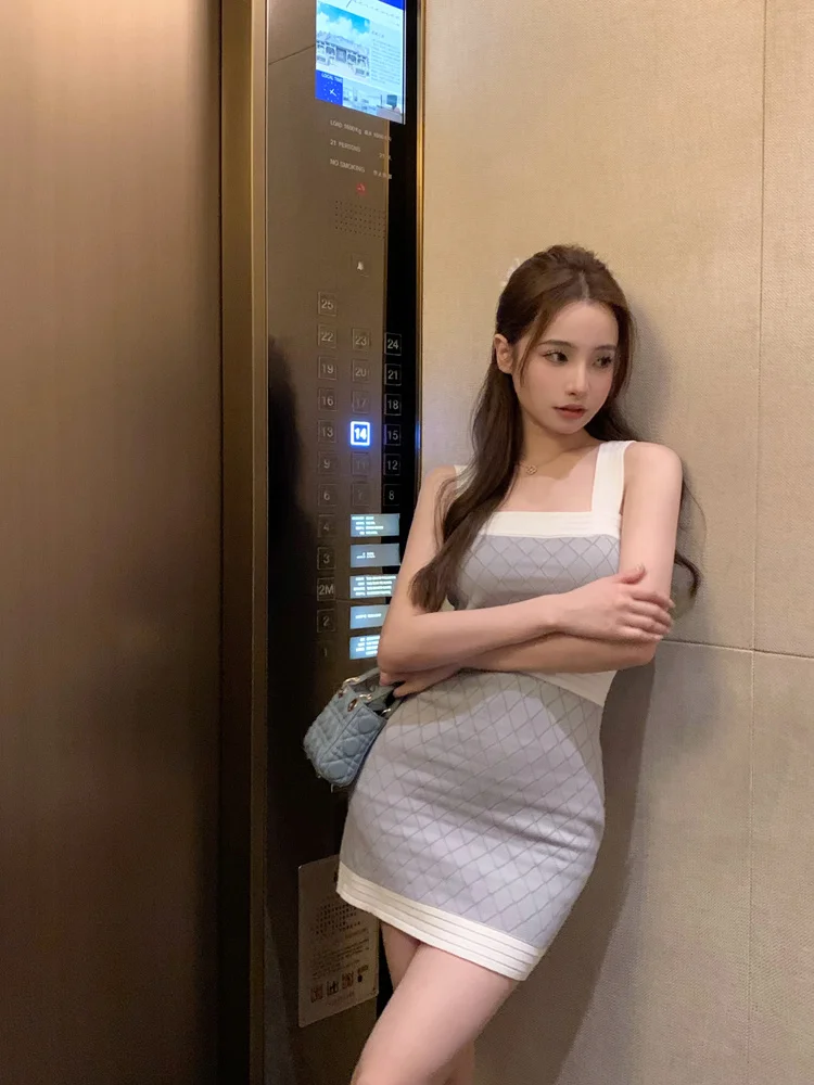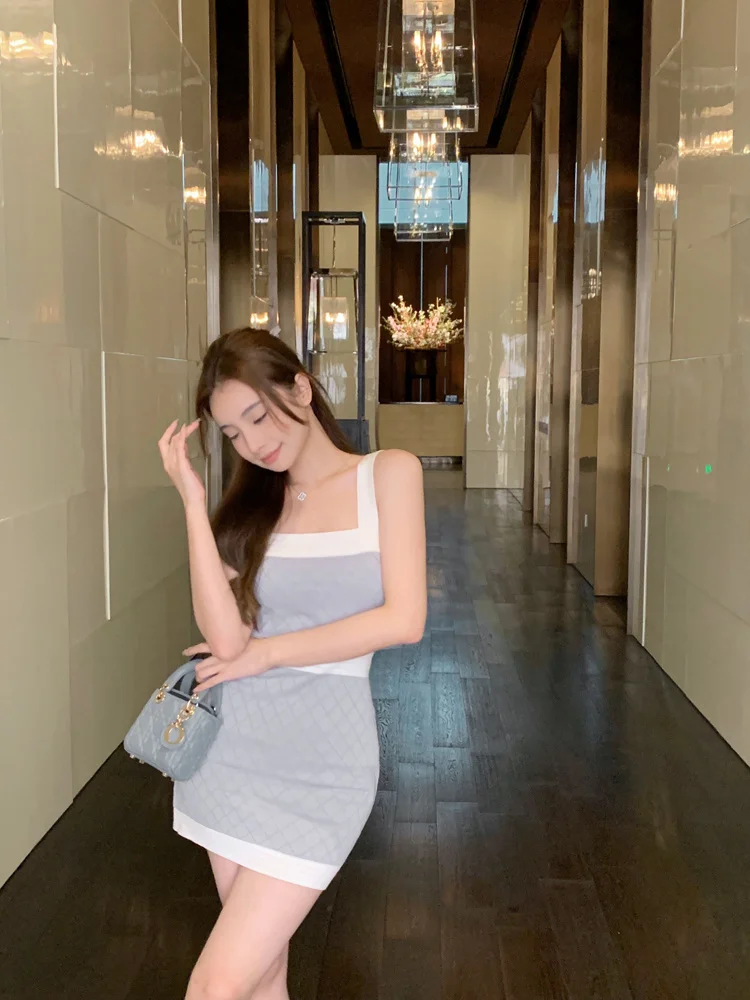 High Quality Elegant Fashion Stretch Knitted Dress For Women 2023 Summer Sexy Sleeveless Summer Dress Korean Weet Cute Dresses