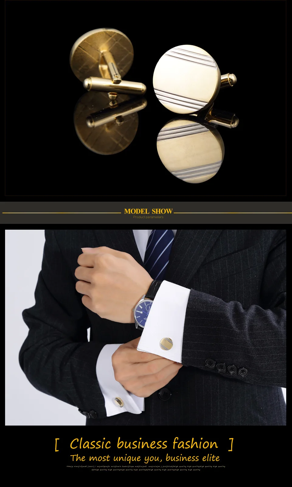 High Quality Golden Round Shape French Shirt Cufflinks For Men’s Cuff Buttons Business Wedding Groom Jewelry Gifts