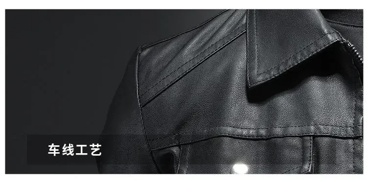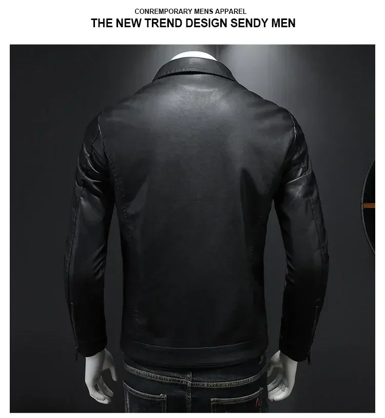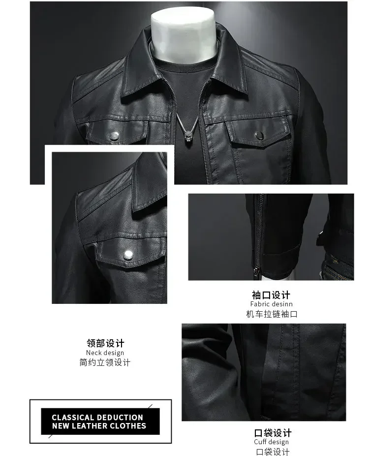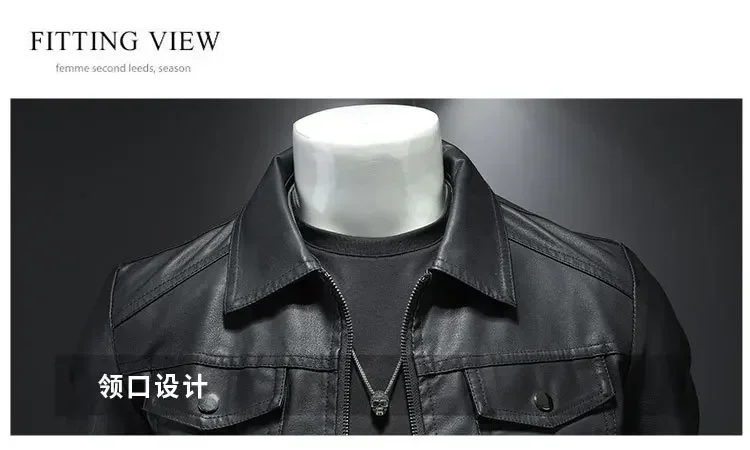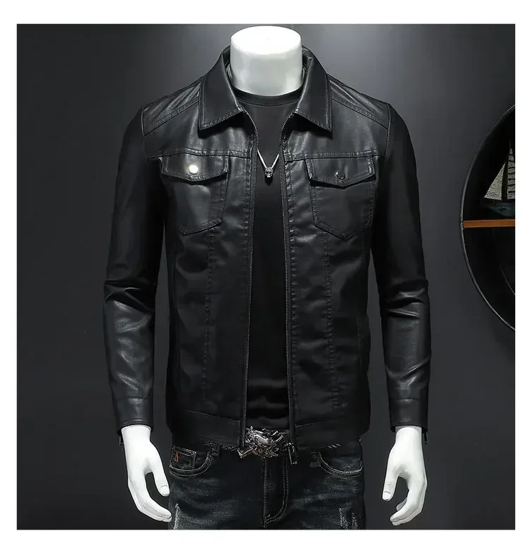 High Quality Pu Coat 5Xl Men’s Motorcycle Leather Large Size Pocket Black Zipper Lapel Slim Fit Male Spring and Autumn Jacket