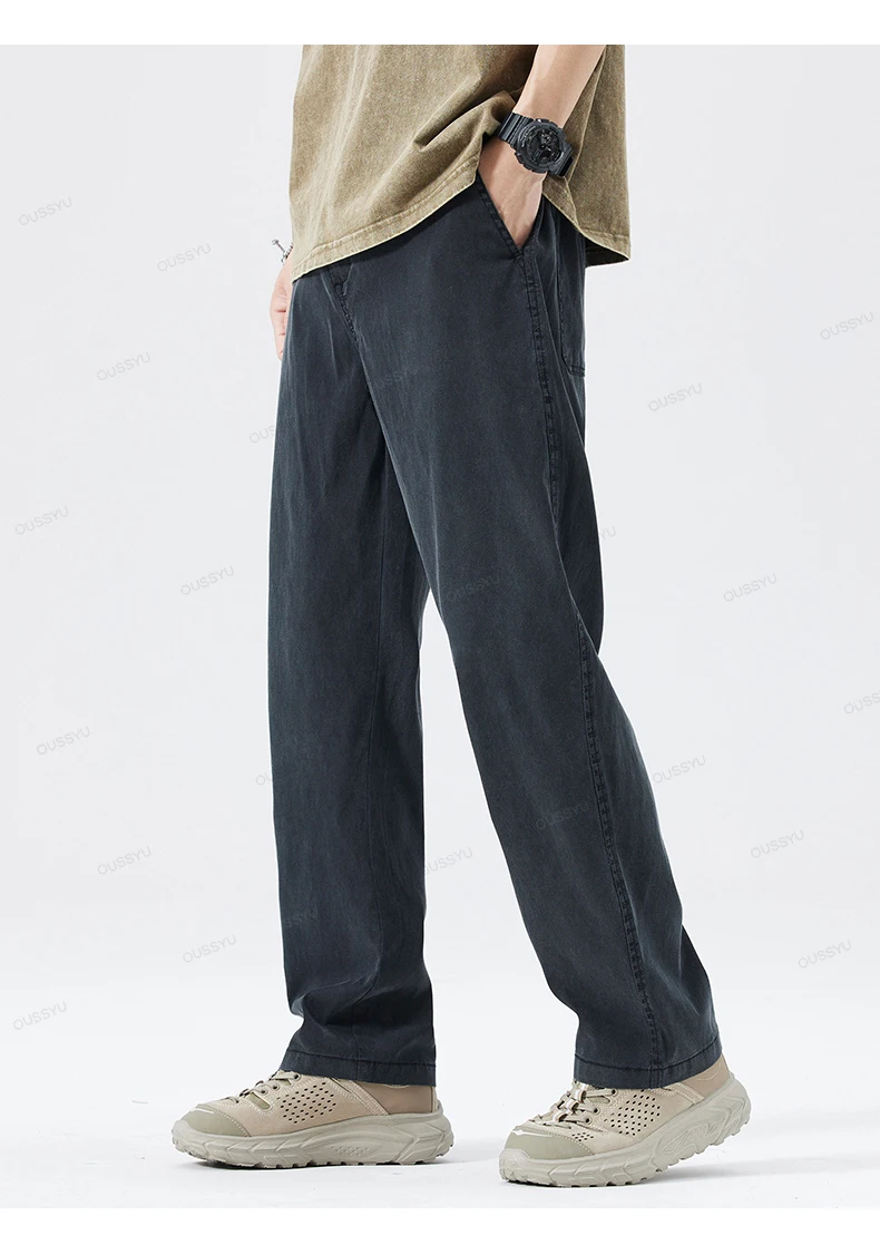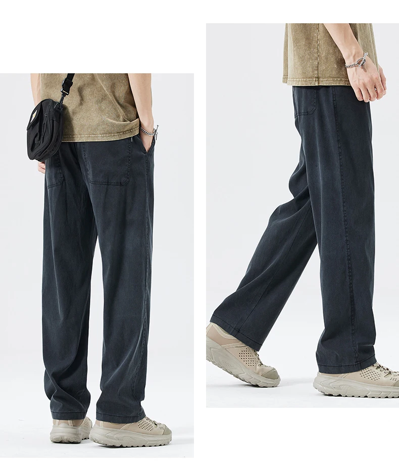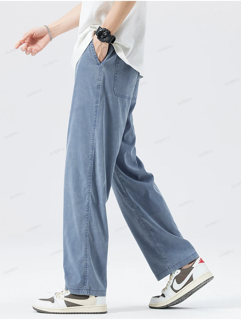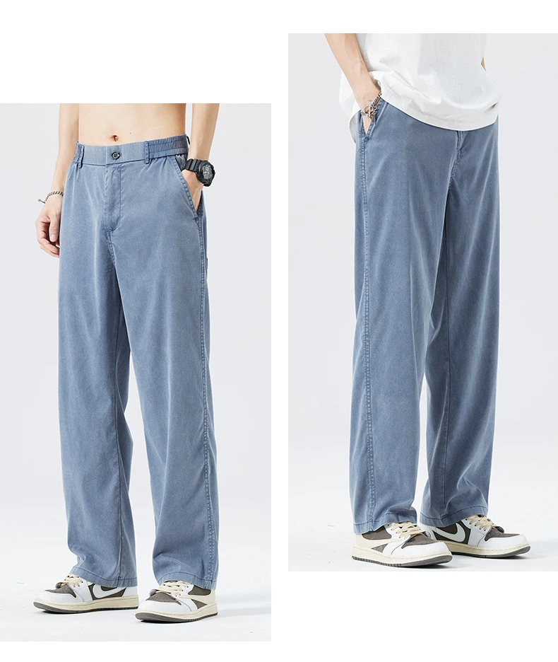 High Quality Summer Thin Soft Lyocell Fabric Men’s Jeans Loose Straight Pants Elastic Waist Korea Casual Trouser Plus Size M-5XL