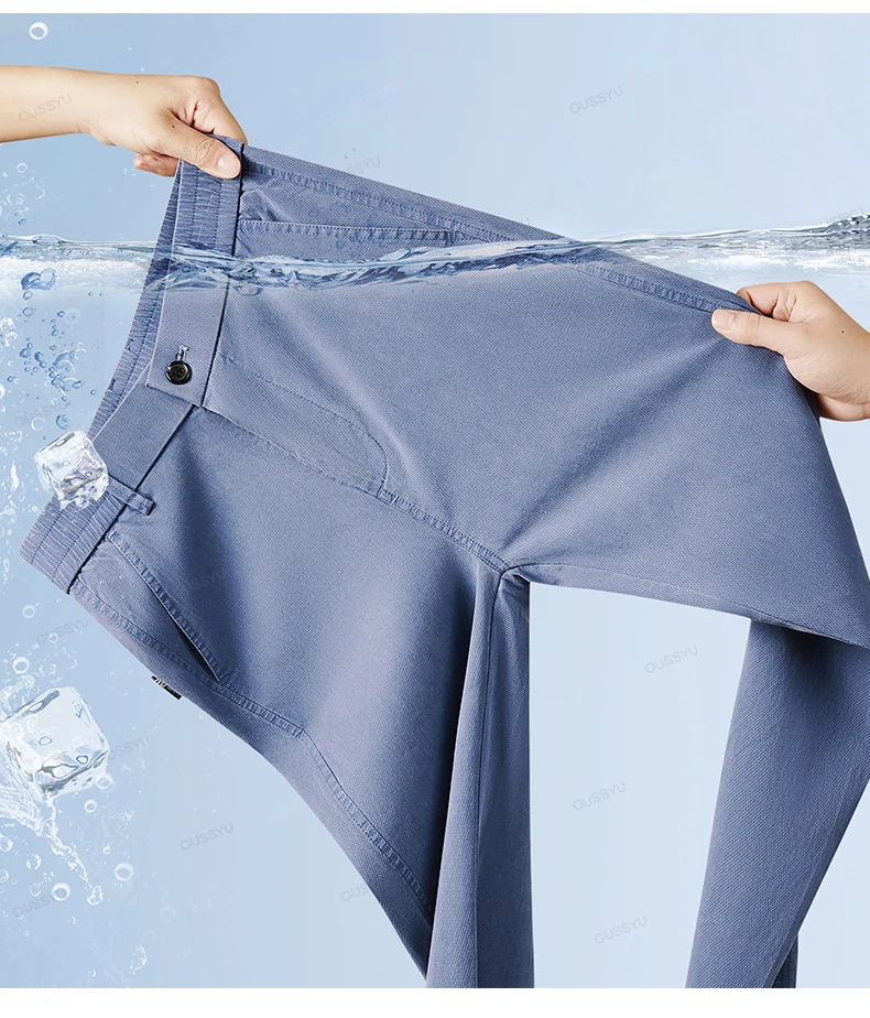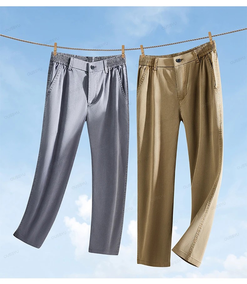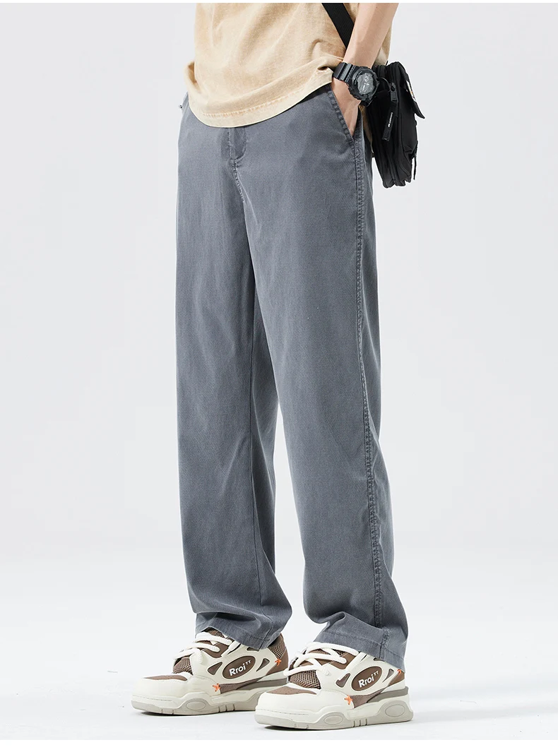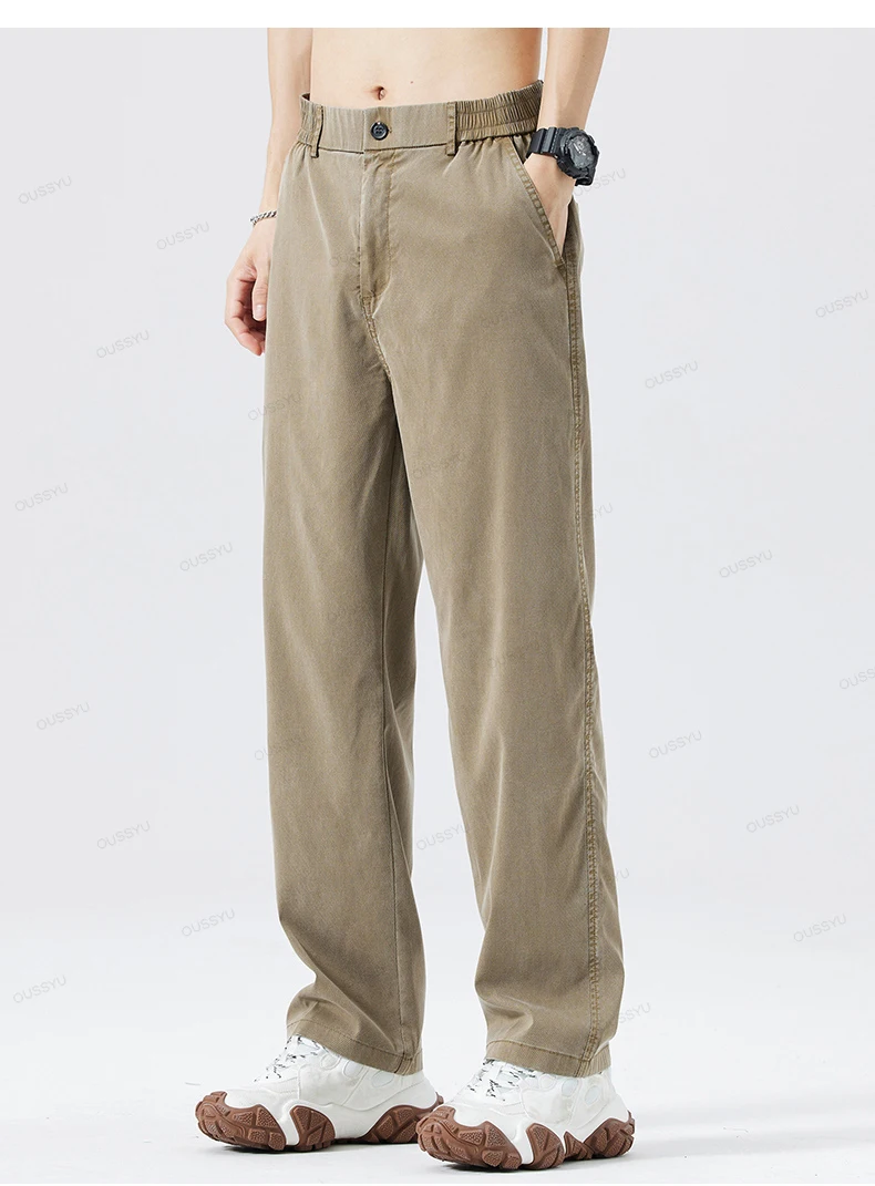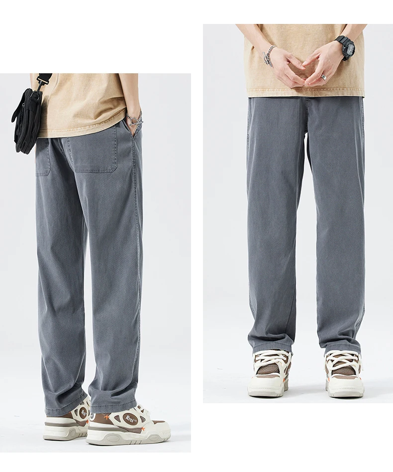 High Quality Summer Thin Soft Lyocell Fabric Men’s Jeans Loose Straight Pants Elastic Waist Korea Casual Trouser Plus Size M-5XL