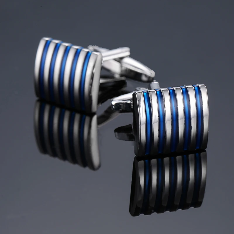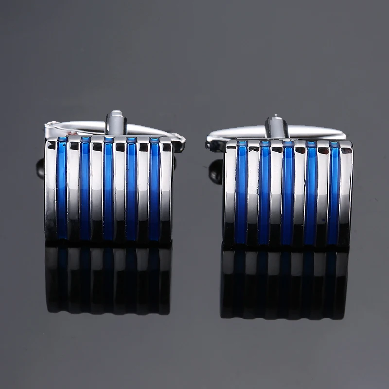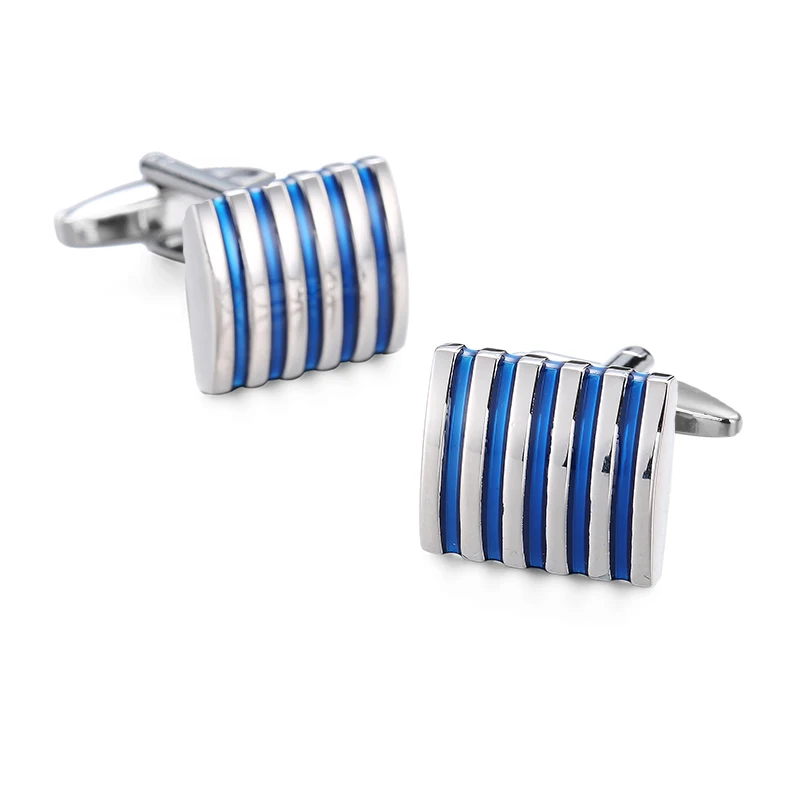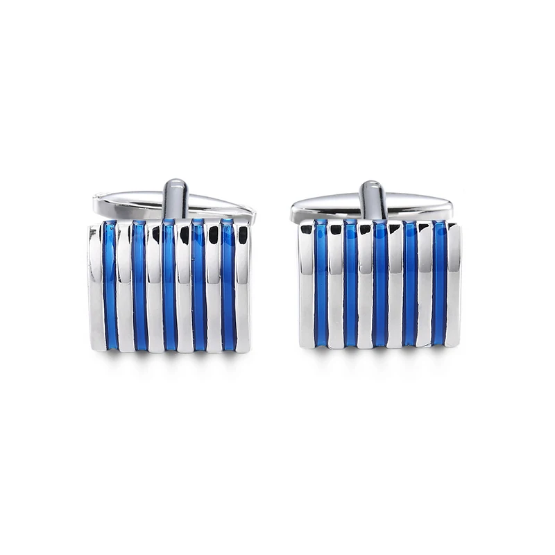 High qualityblue striped cufflinks, French shirt, brass material, designed by brand designer for men’s wedding cufflinks