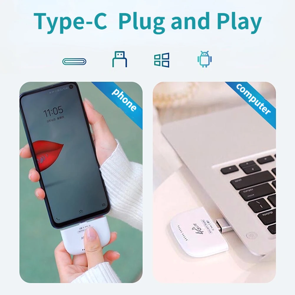 High Speed 4G LTE WiFi Modem with USB Adapter Wireless 4G Router Type-C Mobile Router for RV Travel Vacation Camping Remote Area