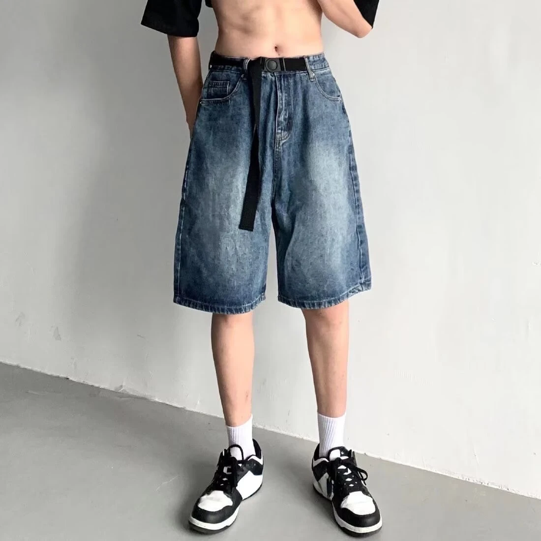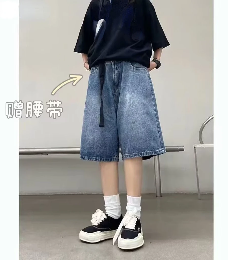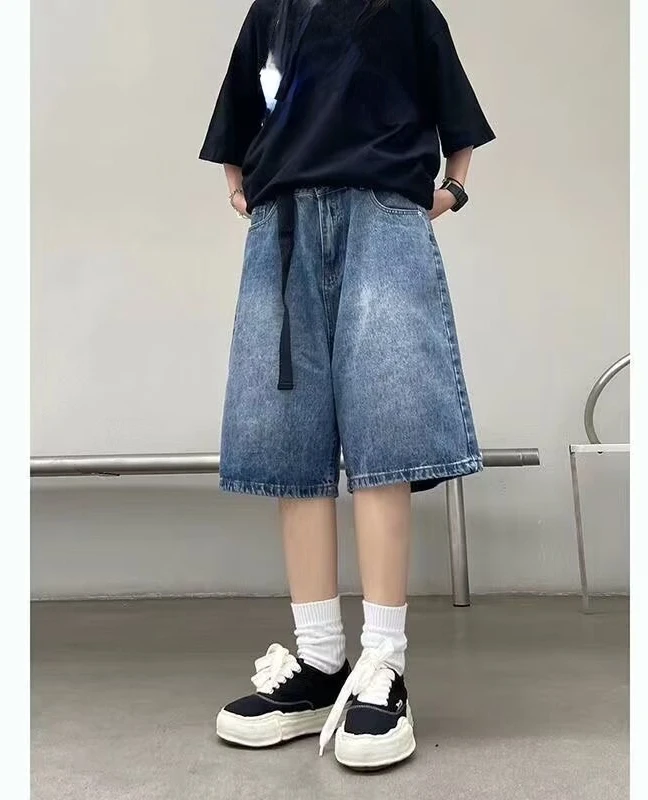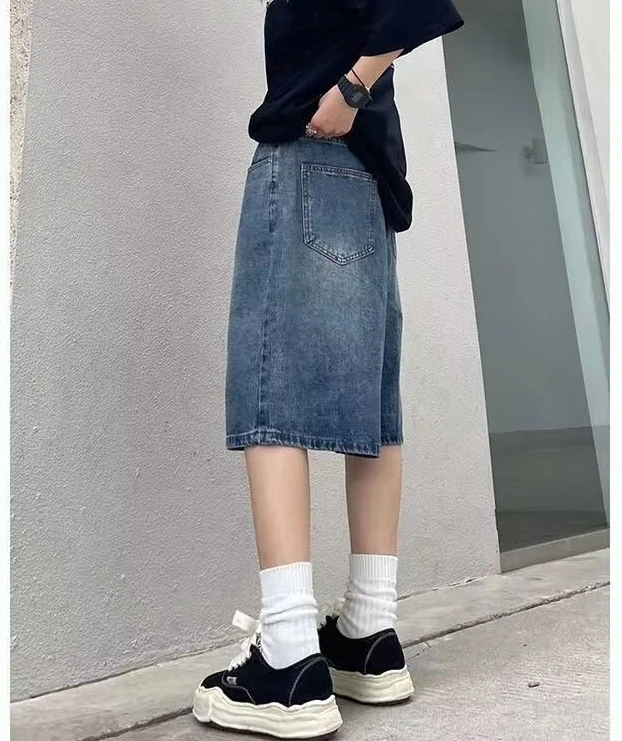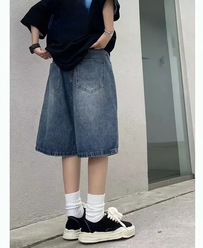 High Street Retro Blue Jeans Shorts Women Summer New Baggy Wide Leg Denim Half Pants Fashion Streetwear Y2k Clothing Oversize