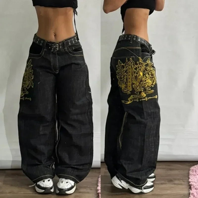 High Waist Vintage Gothic Loose Big Printed Pattern Baggy Jeans Wide-Leg Harajuku 2025 New Streetwear Y2K Men Denim Trousers