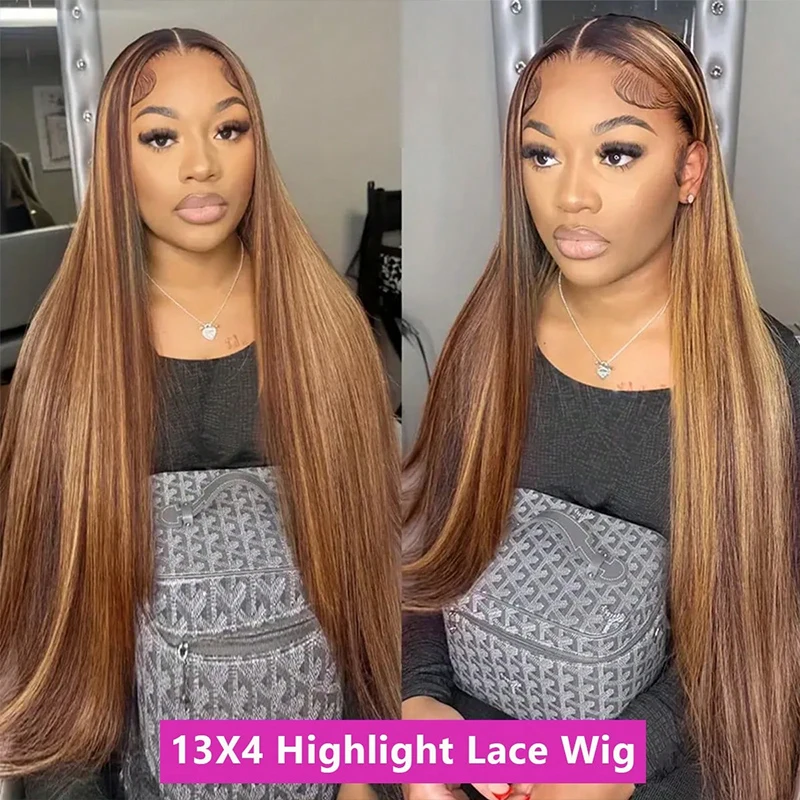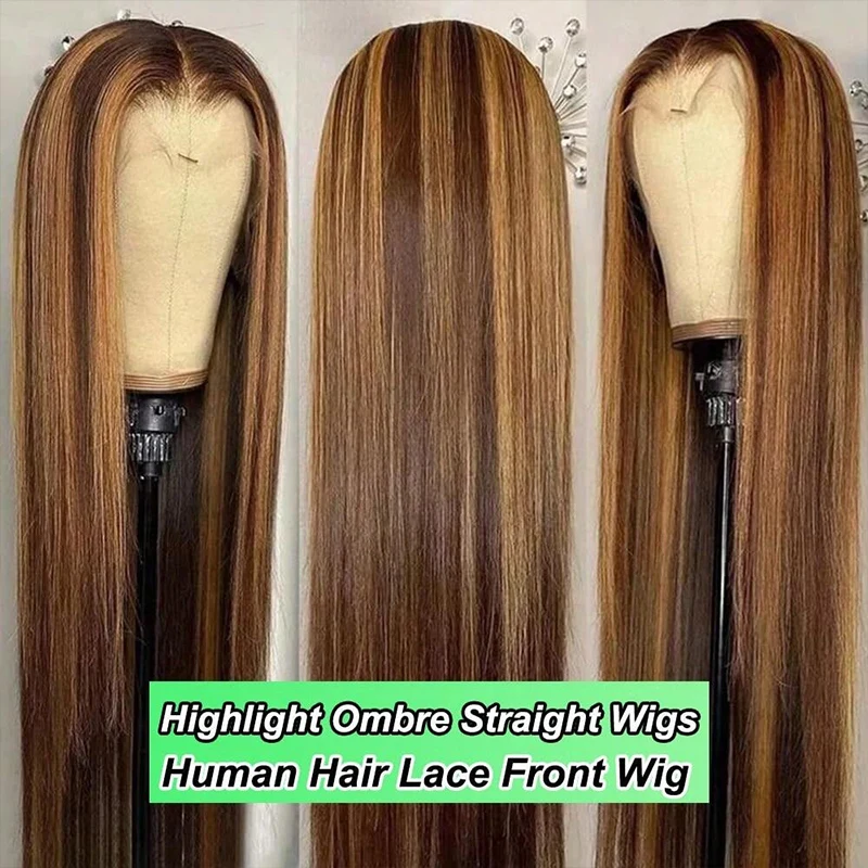 Highlight Wig Human Hair Bone Straight Blond Ombre 13×4 HD Lace Wig Colored Human Hair Frontal Wig Brazilian Wigs 200 Density