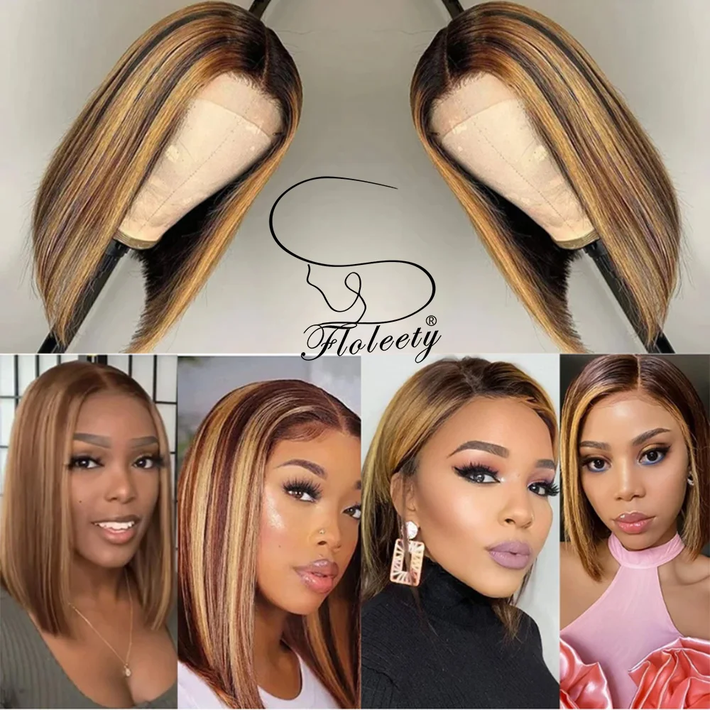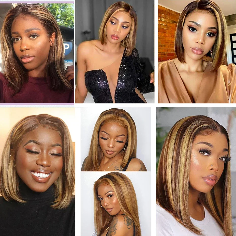 Highlight Wigs Human Hair Straight 13×4 Lace Human Hair P4/27 Bob Wigs Brazilian Remy Hair Short Bob Ombre 4X4 Lace Clsoure Wig