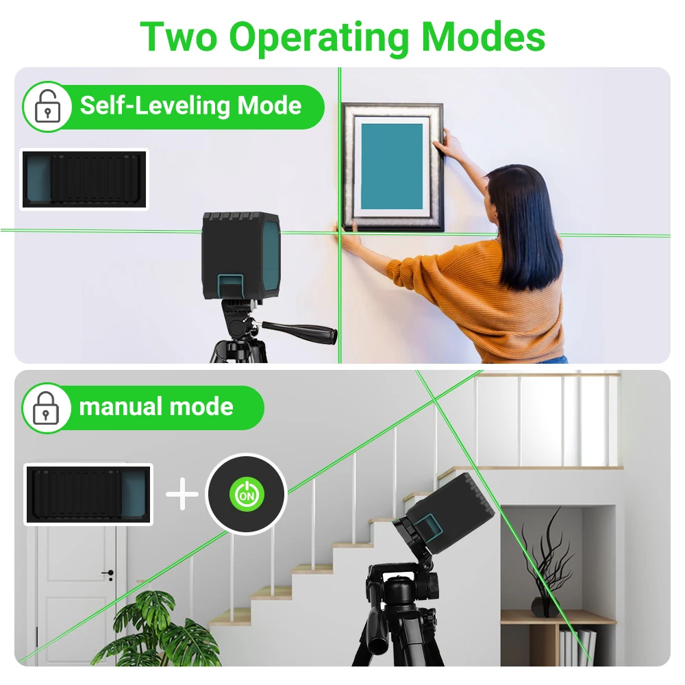 • Green Beams Technology :The laser level features green beams technology, offering bright and visible lines for precise measurement and alignment.