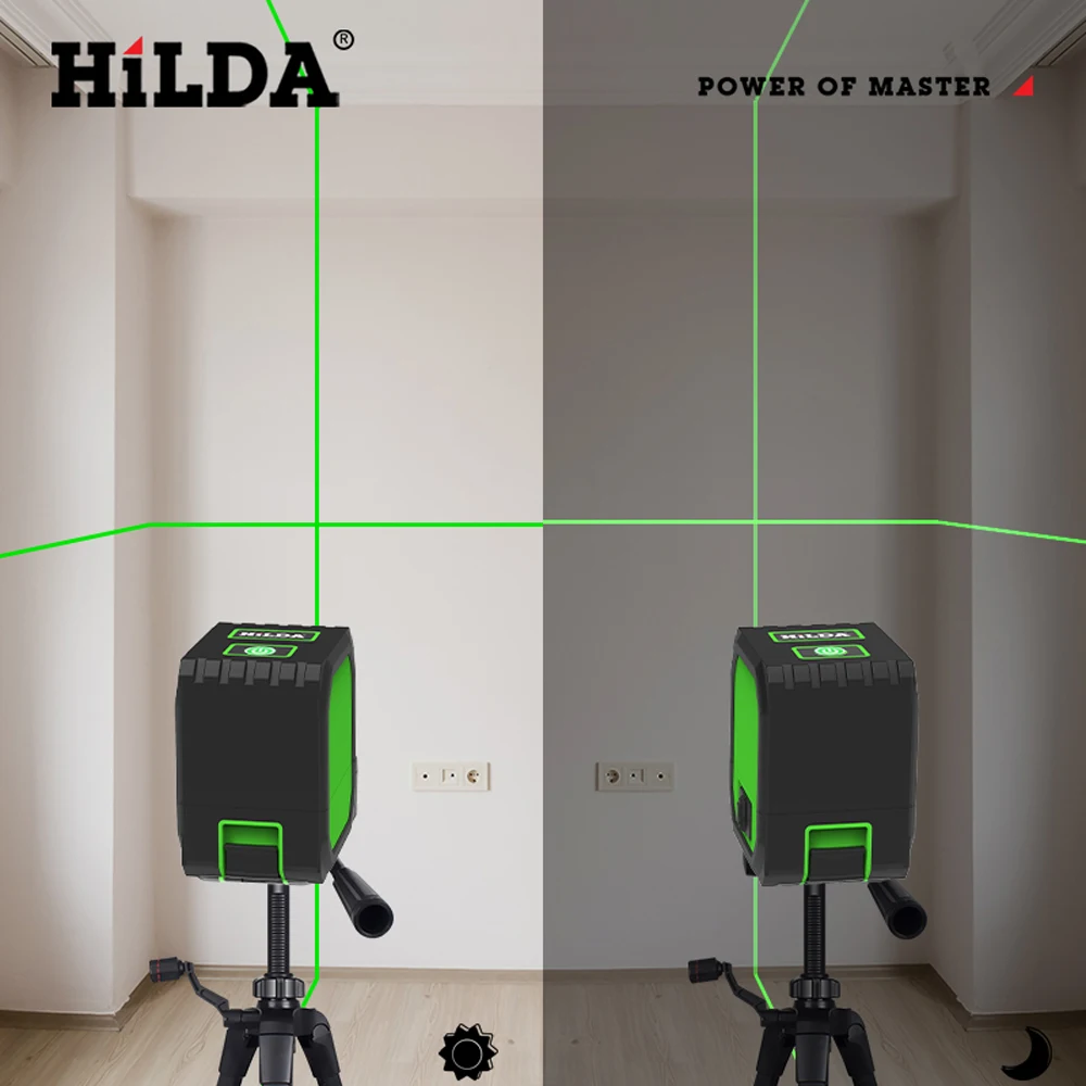 HILDA 2 Lines Laser Level Self Levelling Green Beams Laser Horizontal & Vertical Cross-Line USB charging