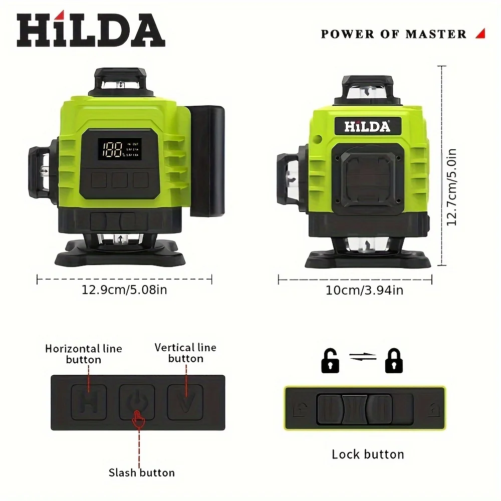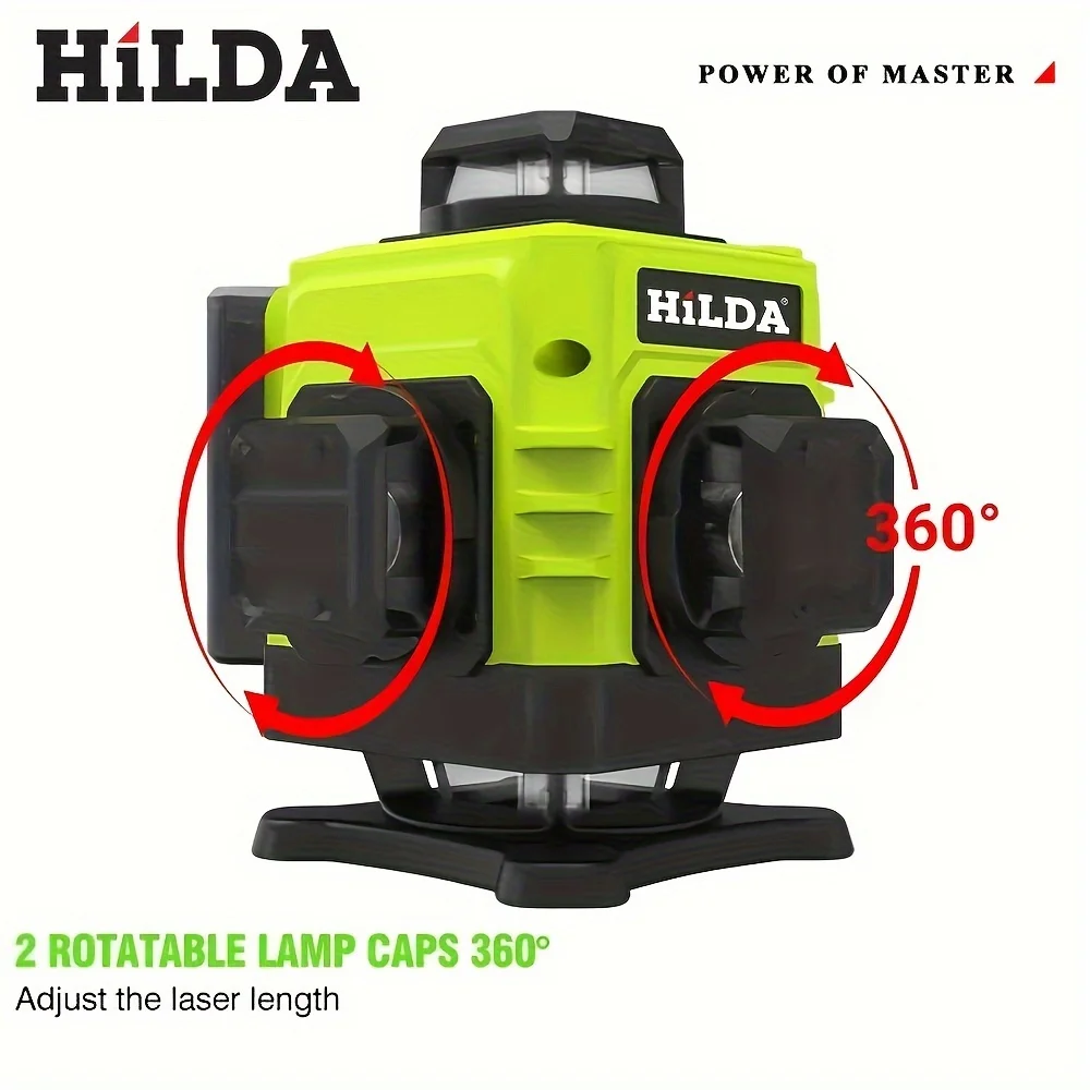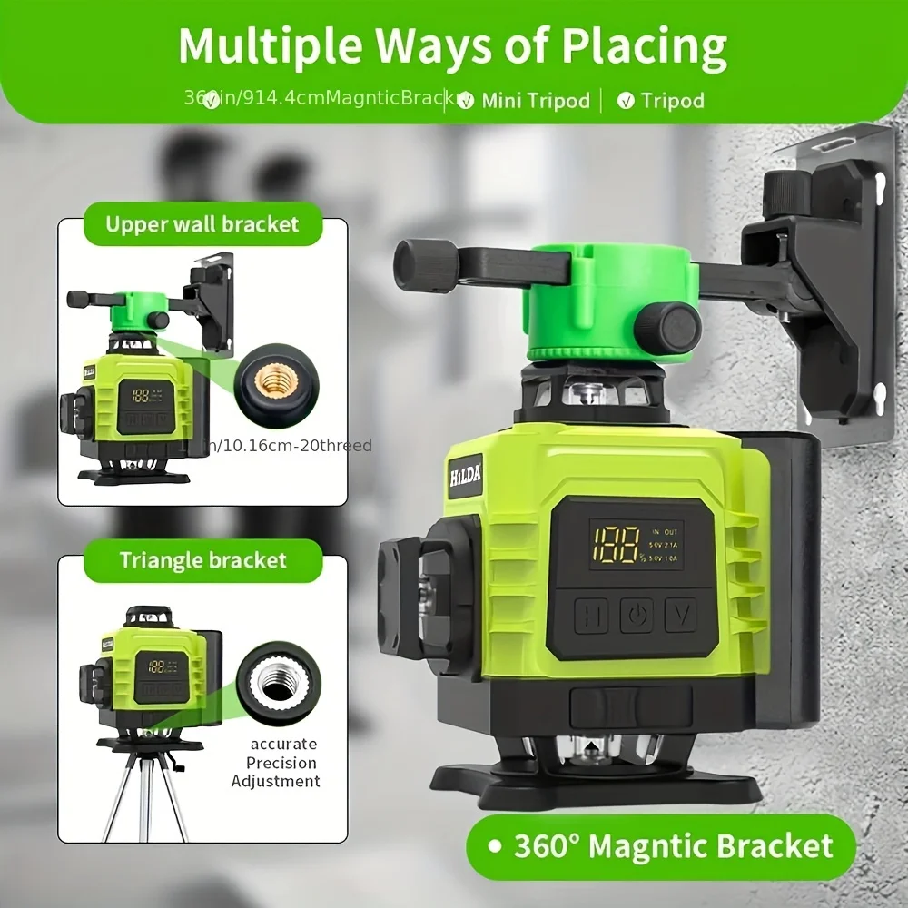 HILDA 4X360 Laser Level with Ultra Absolute Cross Green Light and 16 Line Level with Two Batteries and Rotating Laser Window